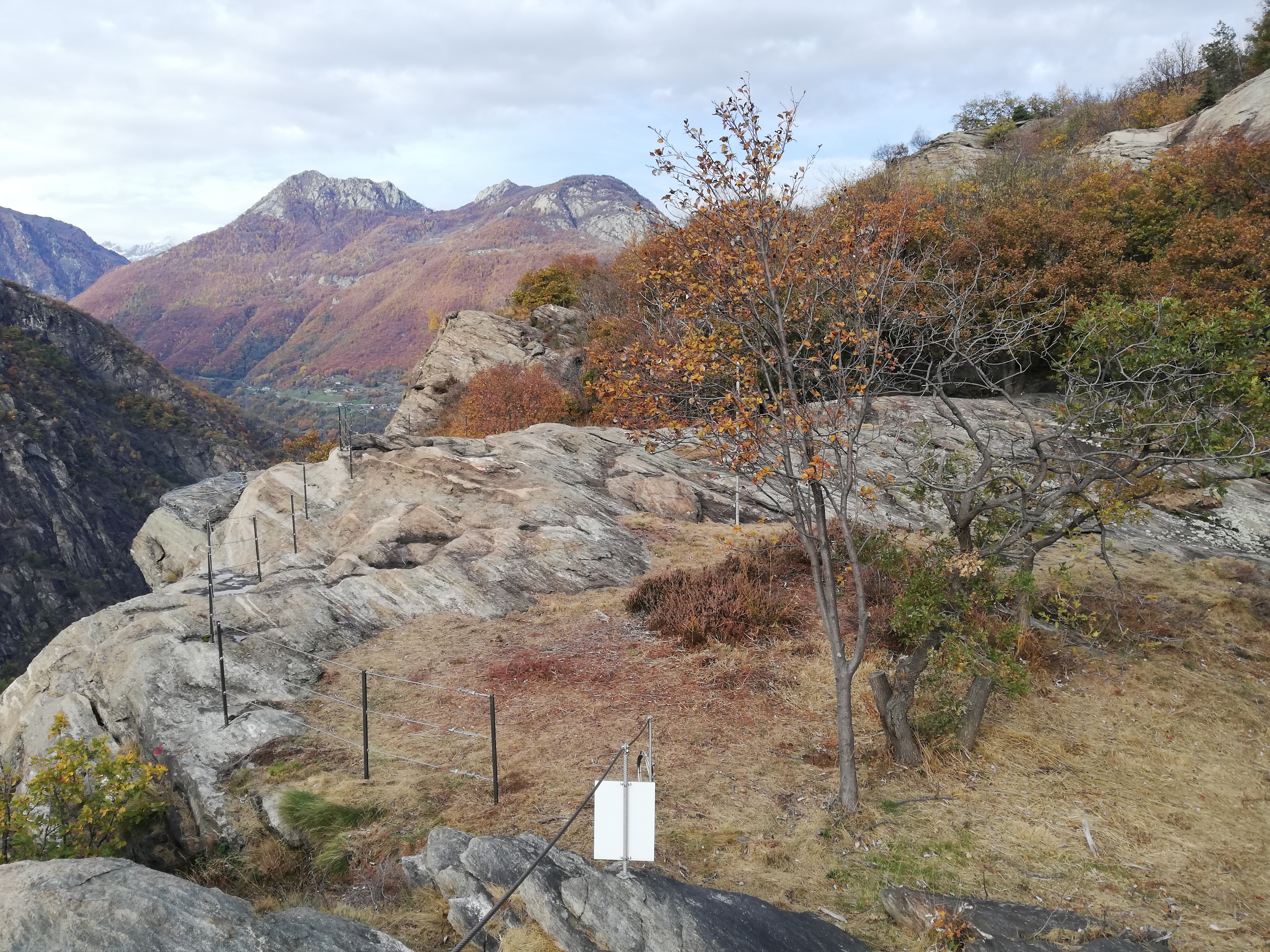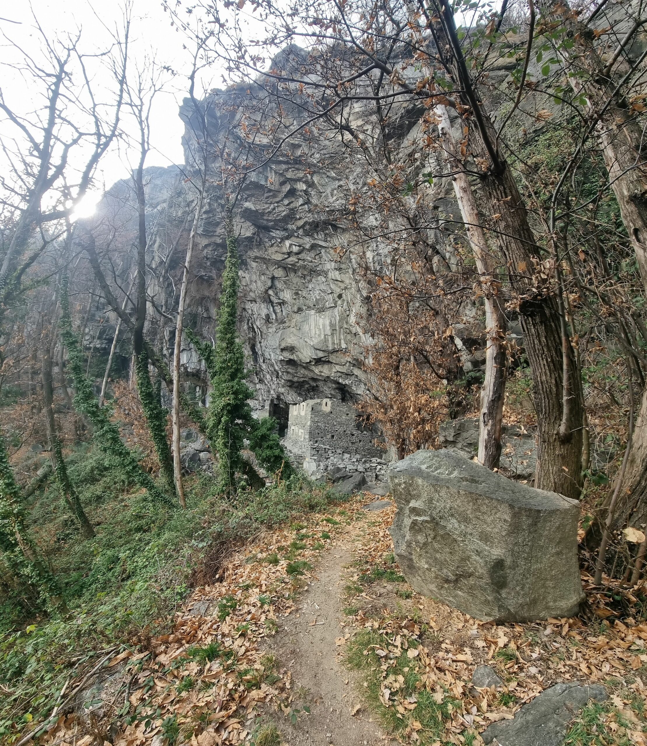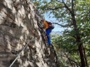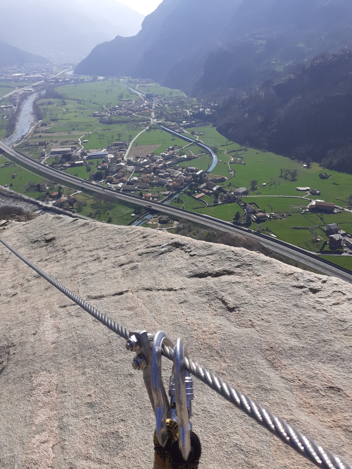 Seguendo i cartelli gialli si percorre una breve sterrata in mezzo ai vigneti ed un breve tratto in mezzo ai castagni, sentiero sempre evidente. Ferrata molto semplice adatta anche come prima esperienza.