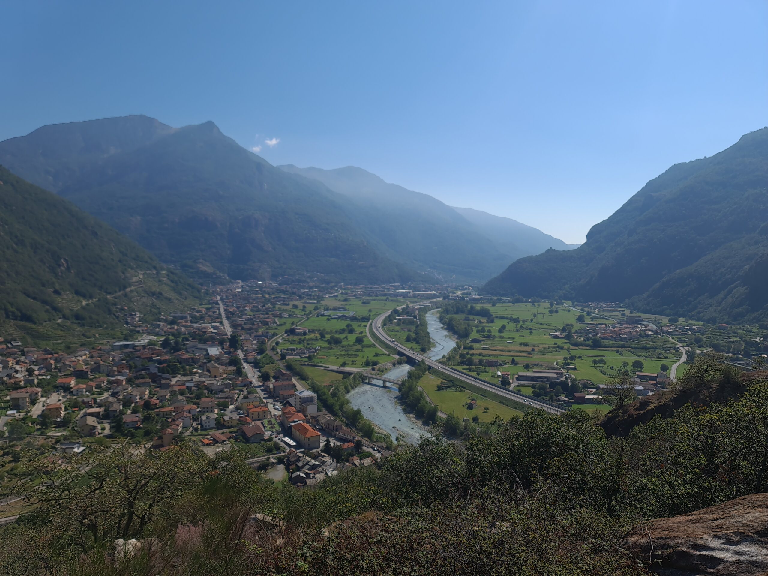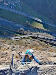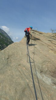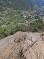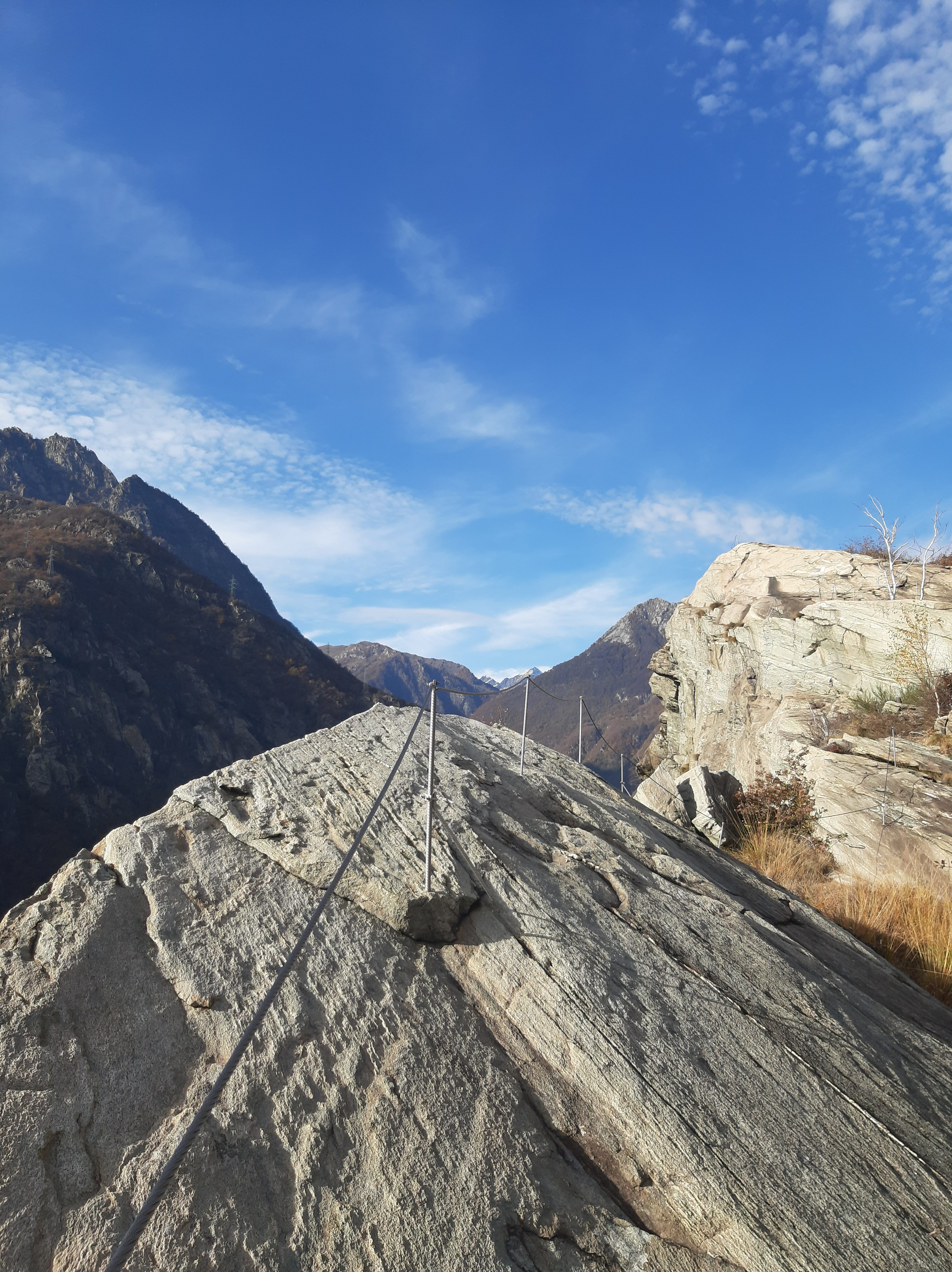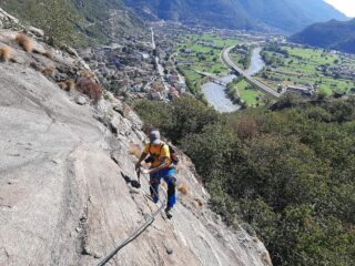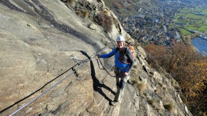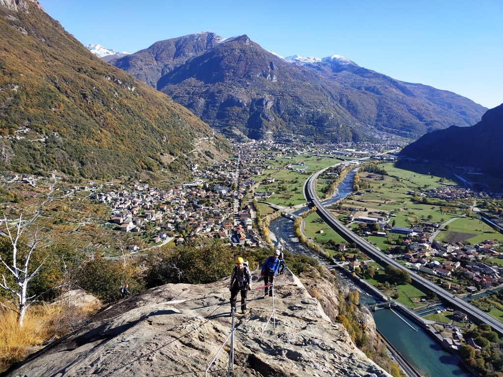 Attrezzata con gradini e cavo d’acciaio, suddivisa in 2 settori principali. Verso la fine è presente una breve variante esposta con alcuni gradini a picco sulla sottostante Statale 26. Si giunge infine su comodo terrazzo adiacente le palestre di roccia da cui si seguono le indicazioni e le frecce gialle per la discesa a Donnas passando dal Vallone di Prele dove presente un masso attrezzato con vie impegnative.