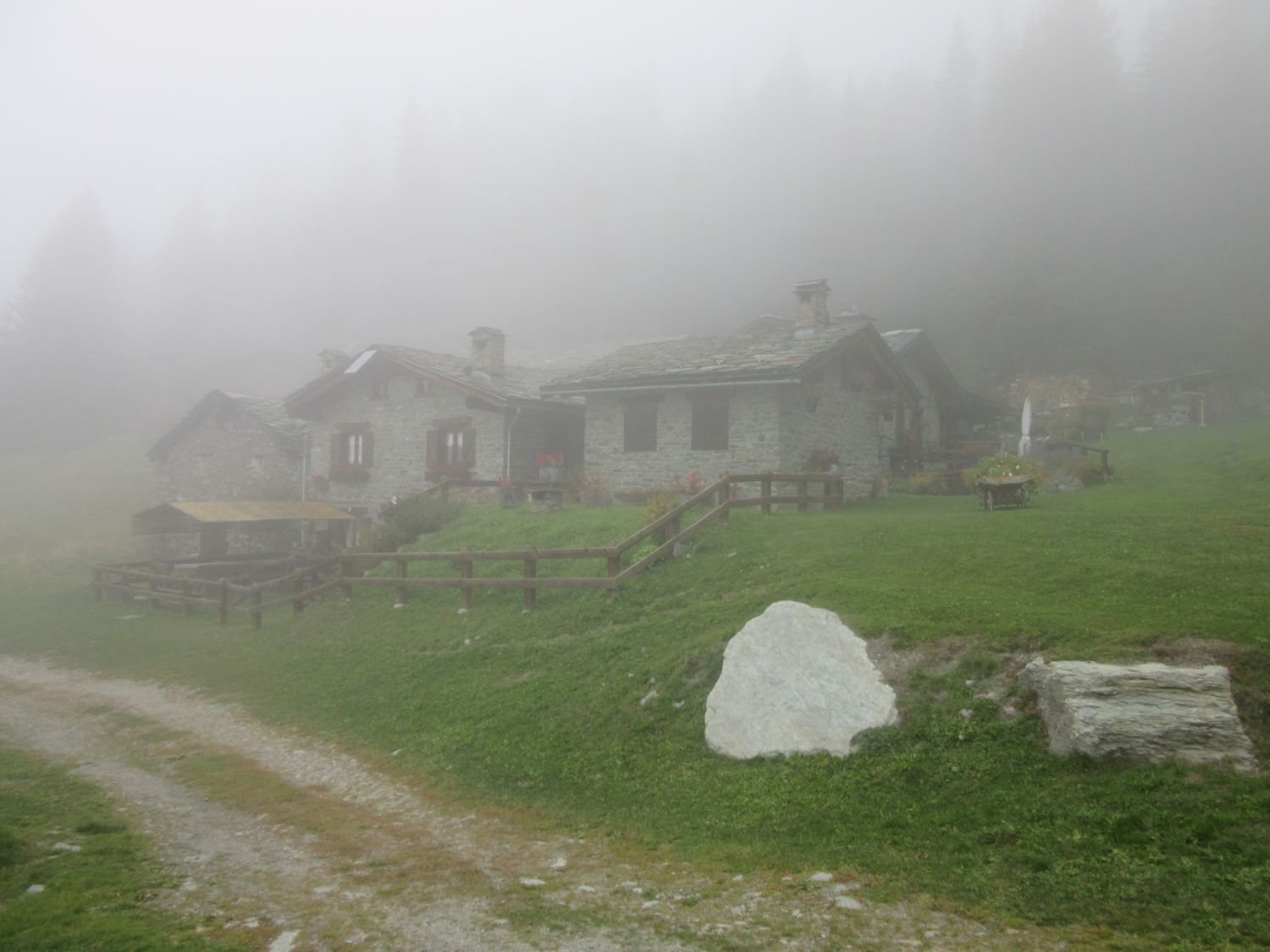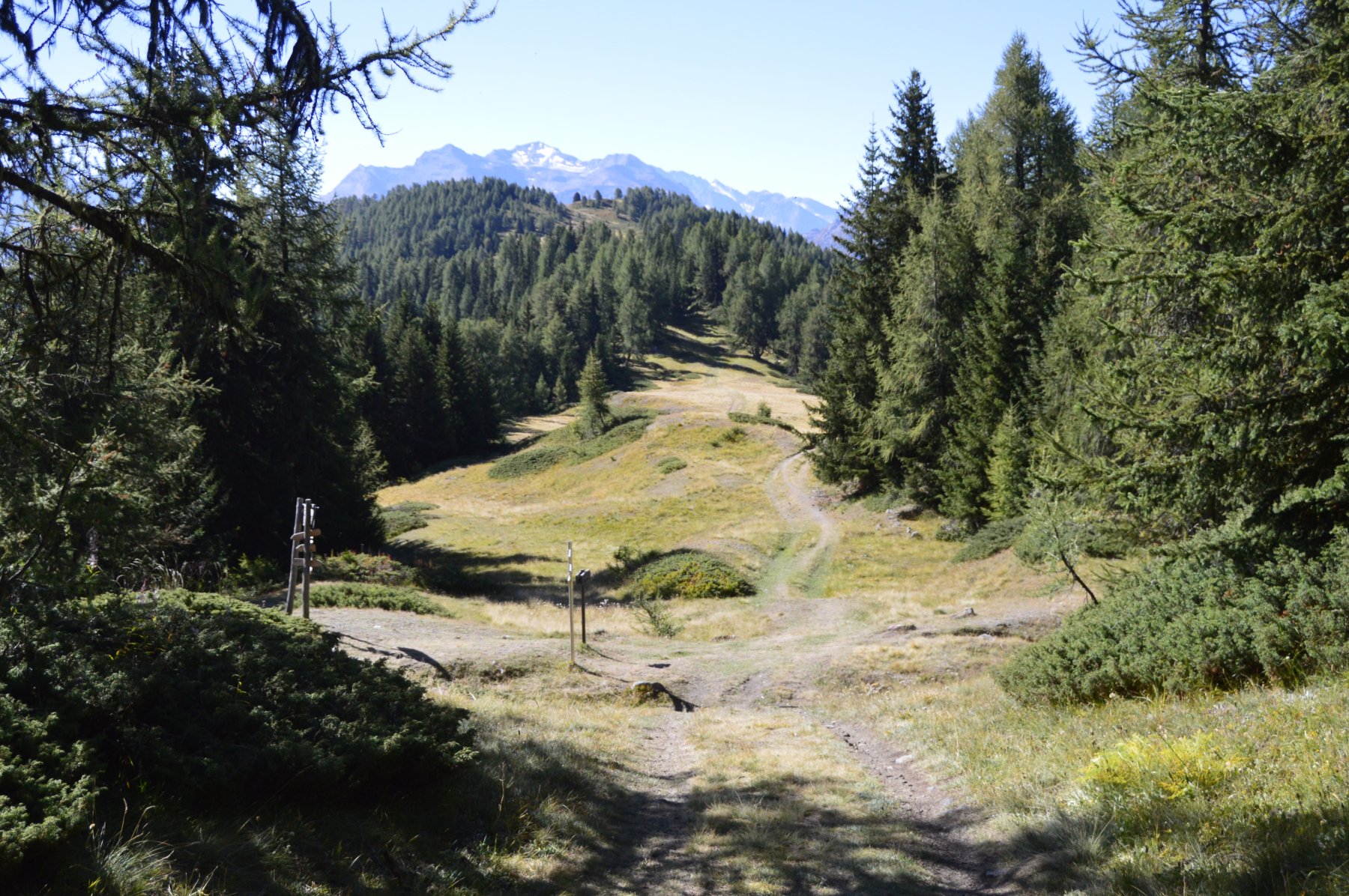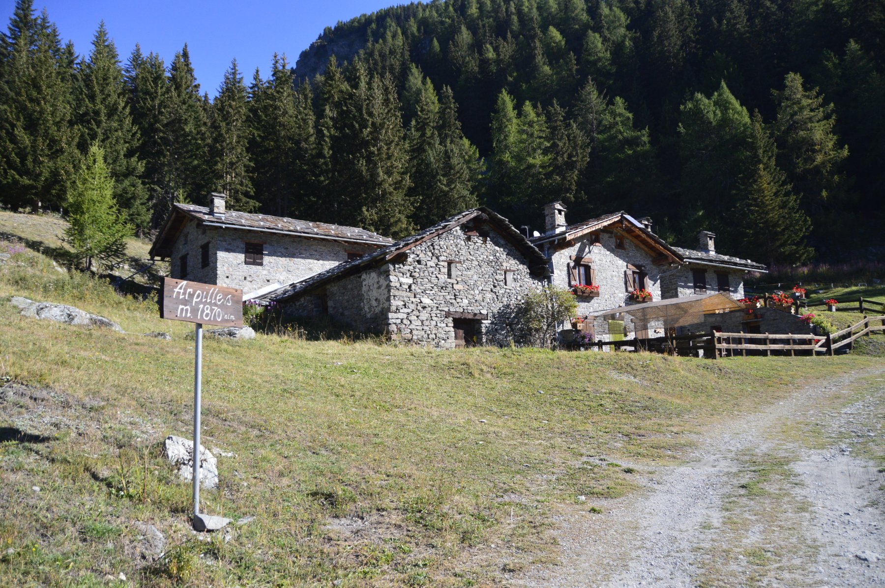 Oltrepassata una baita con stalla, sempre su strada sterrata, si arriva ad un bivio. prendere a sx, in direzione Arpilles (1870).