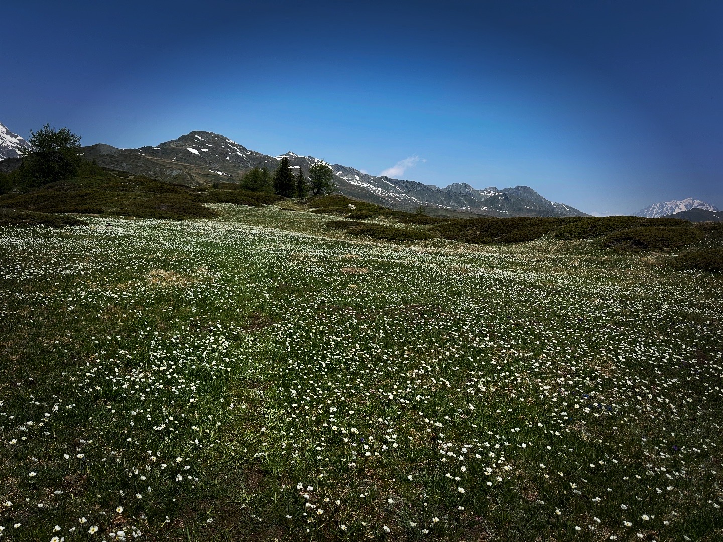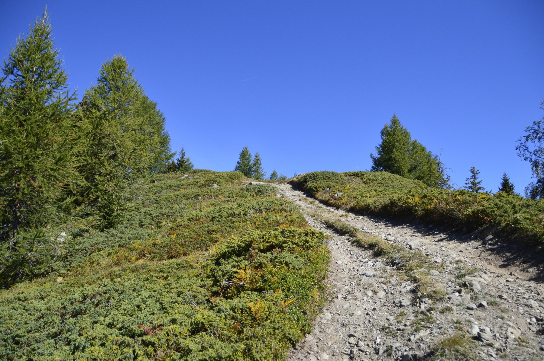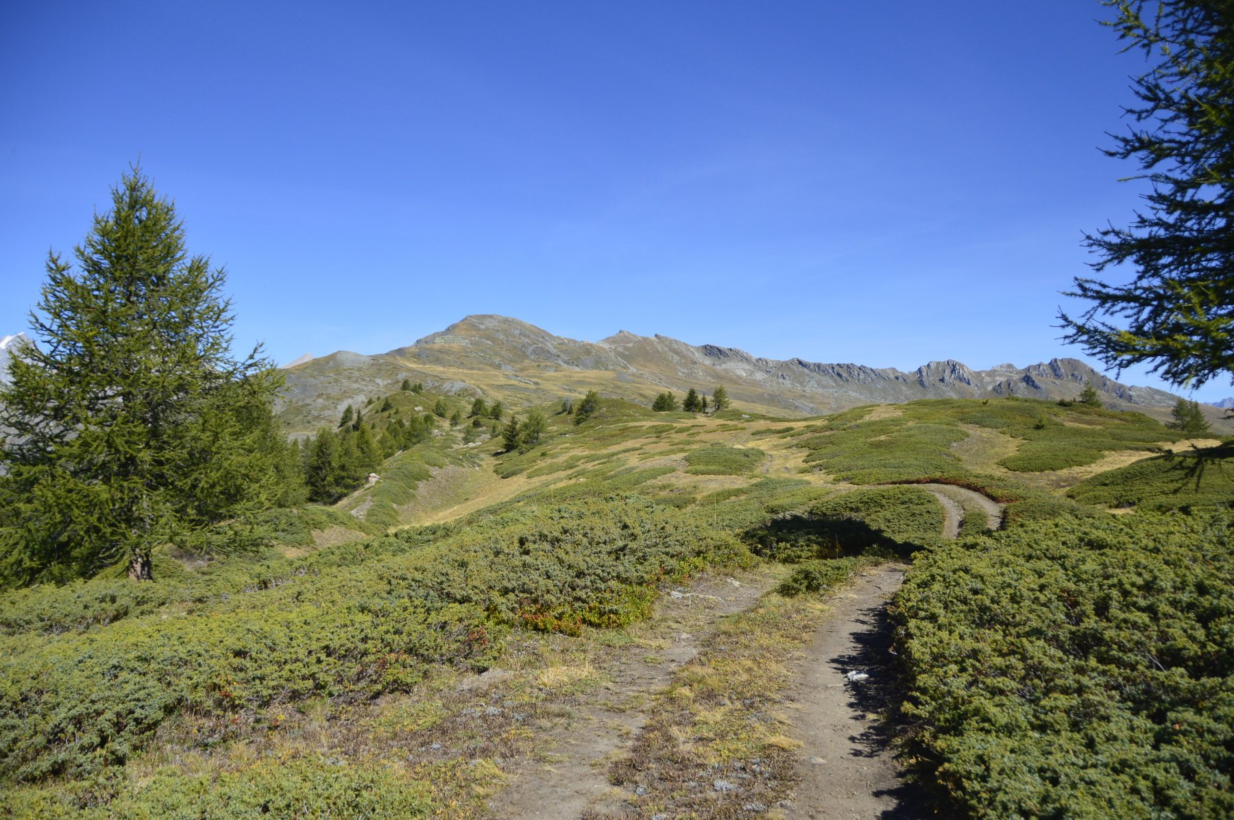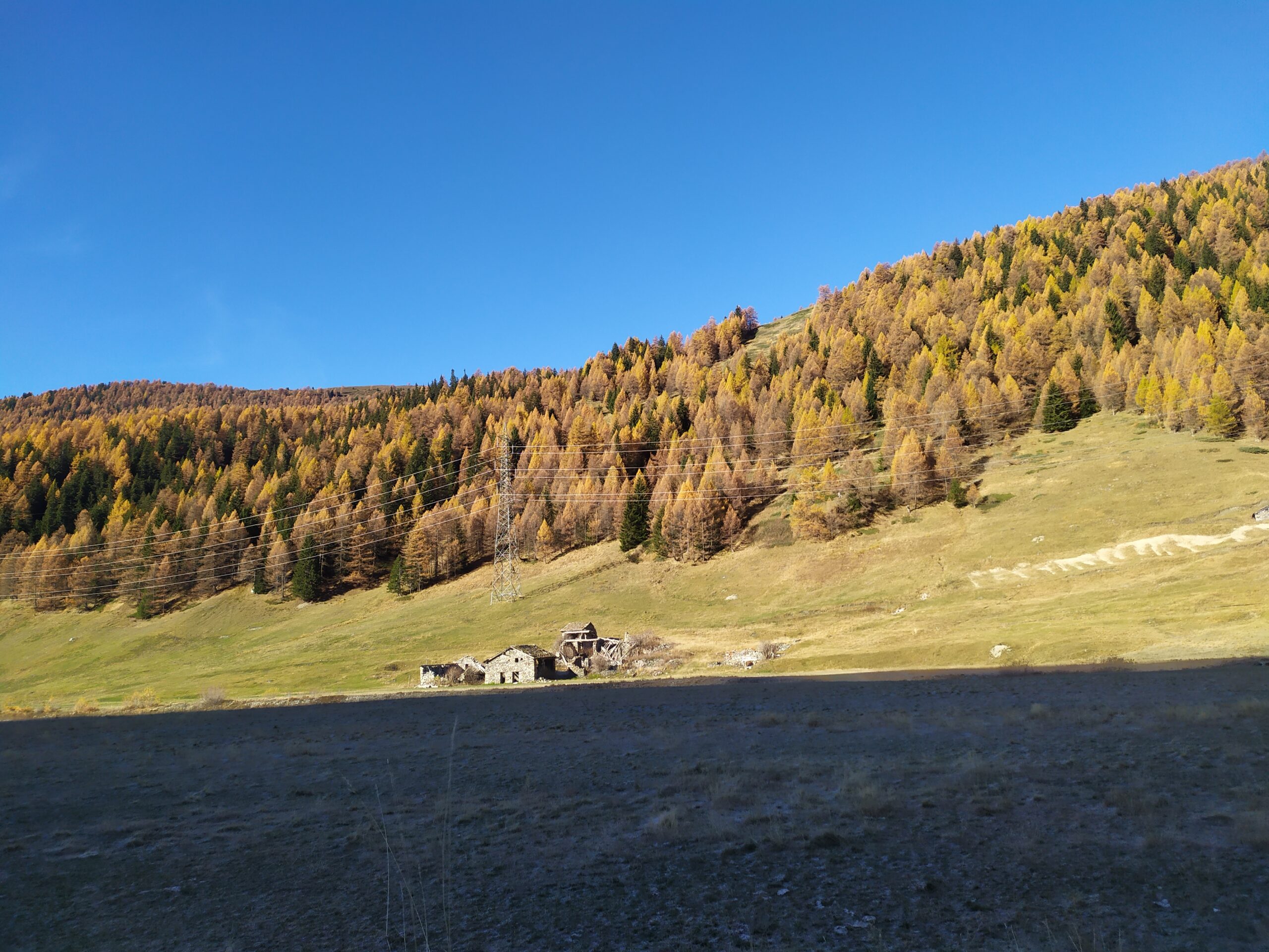 Oltrepassata una baita con stalla, sempre su strada sterrata, si arriva ad un bivio. prendere a sx, in direzione Arpilles (1870).