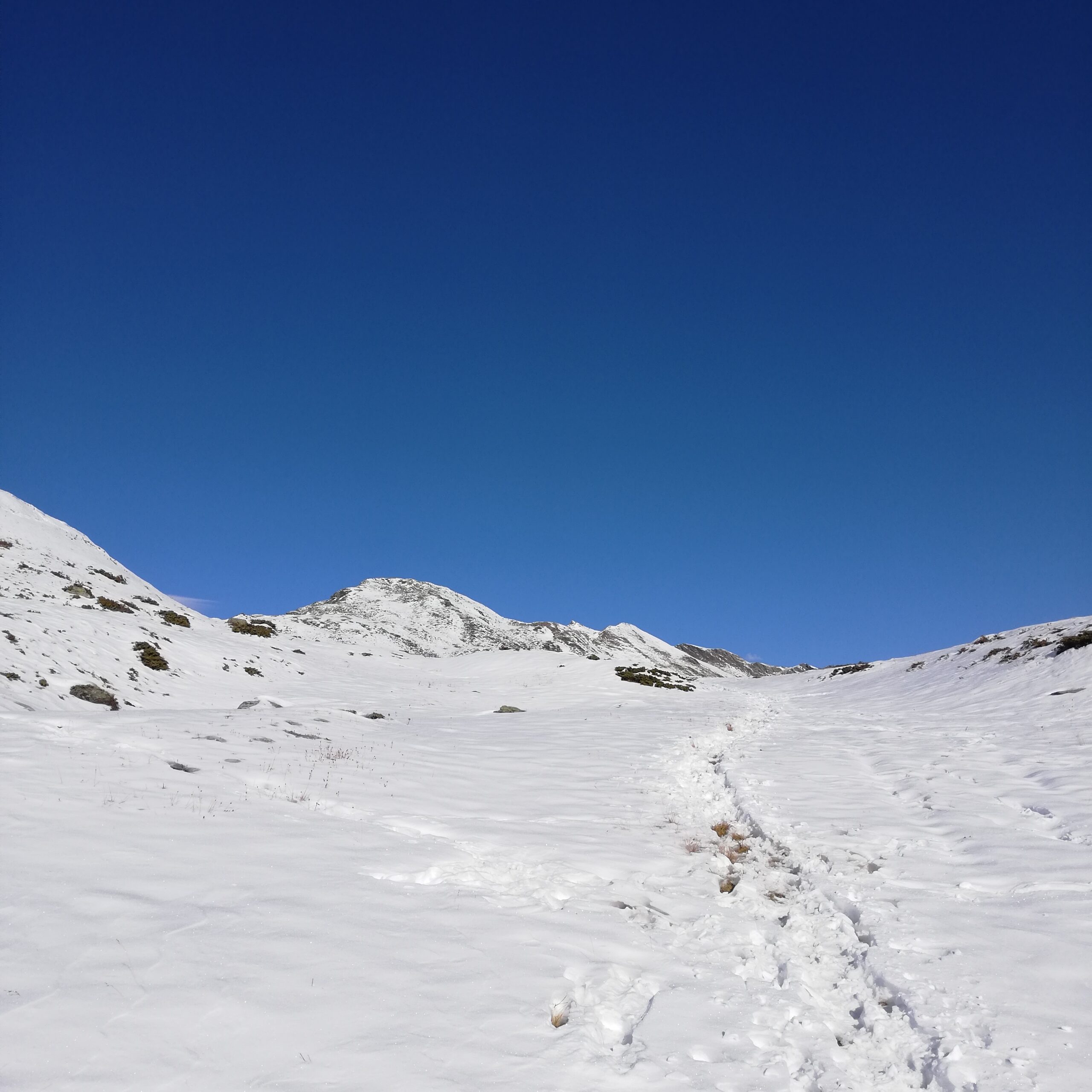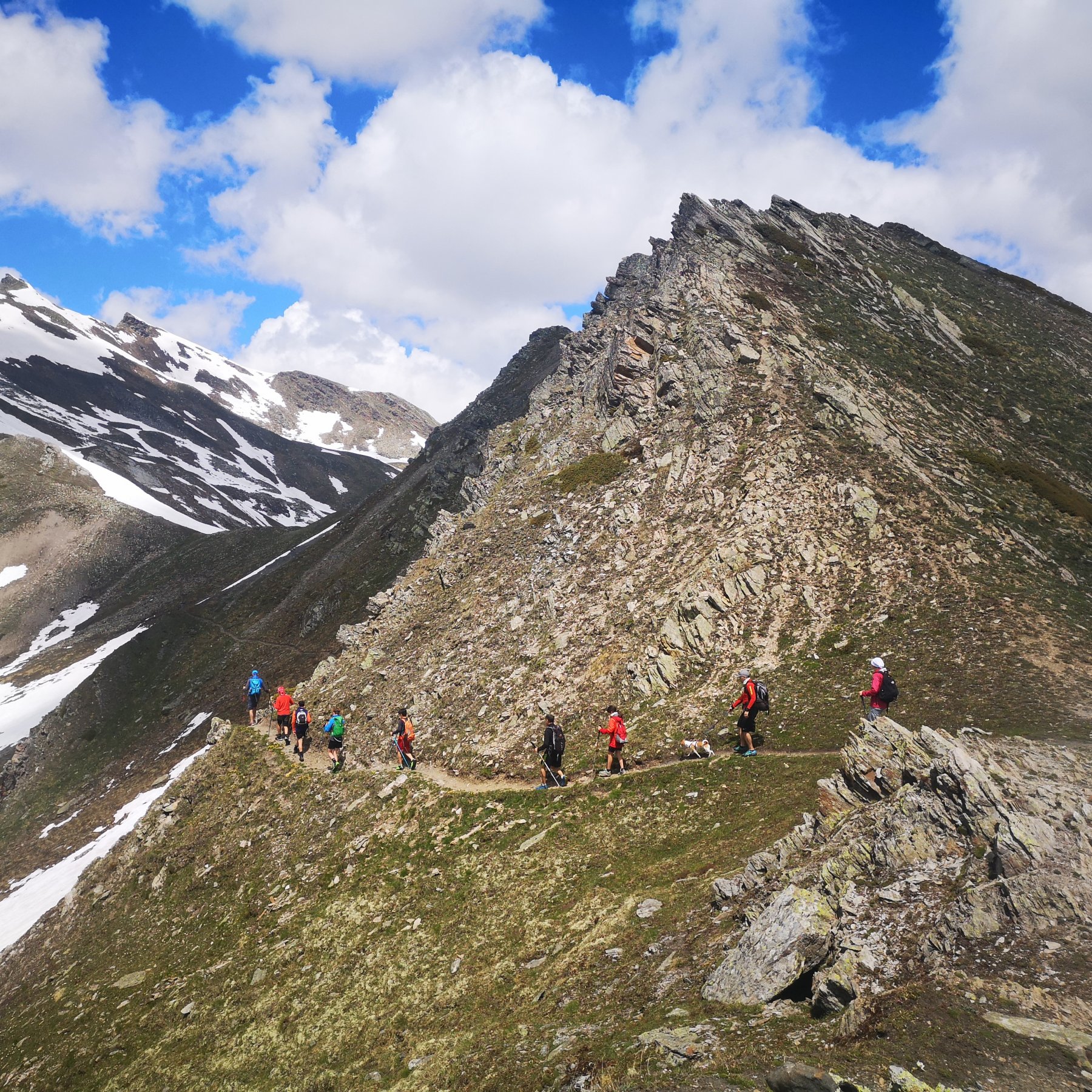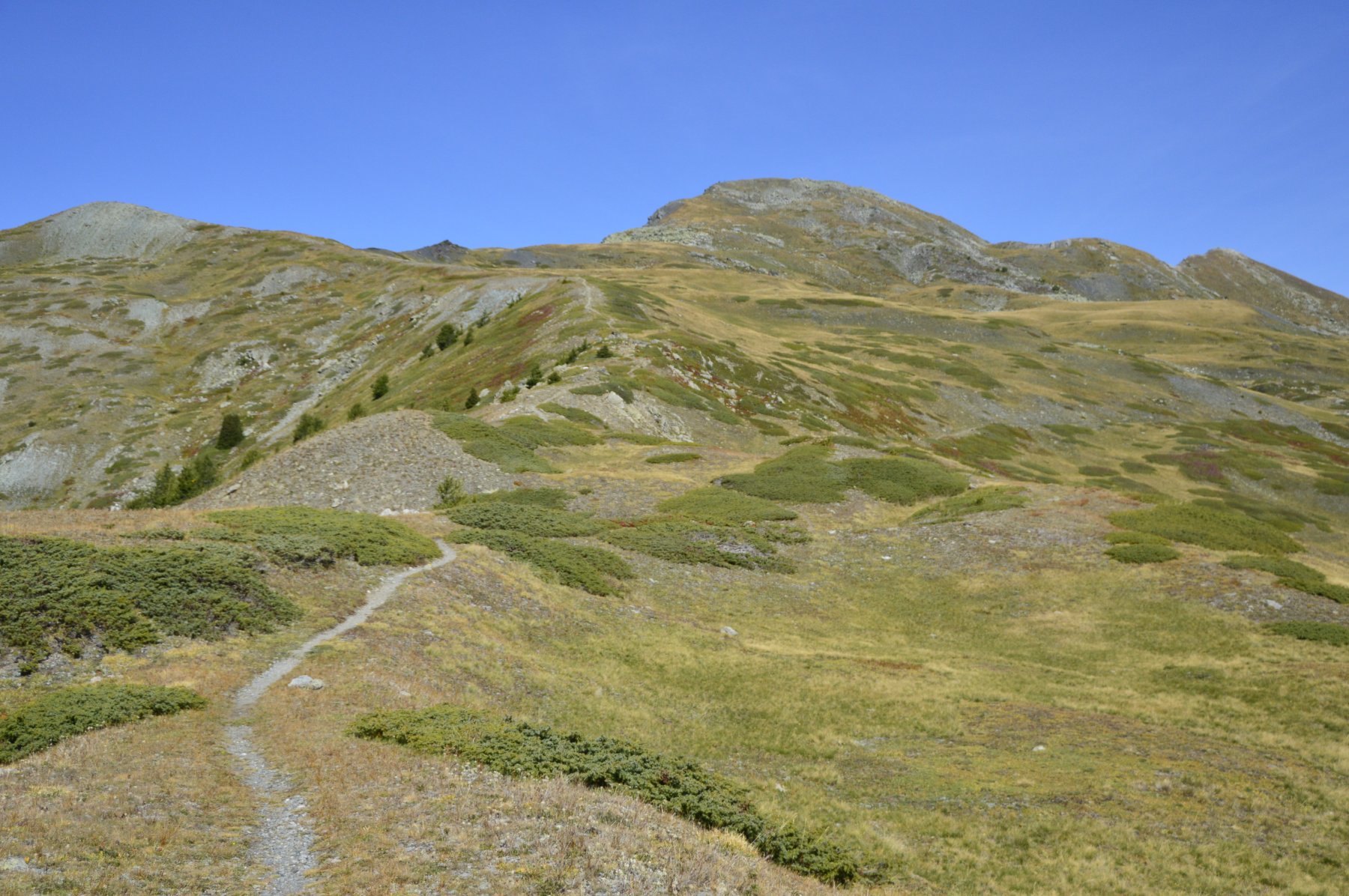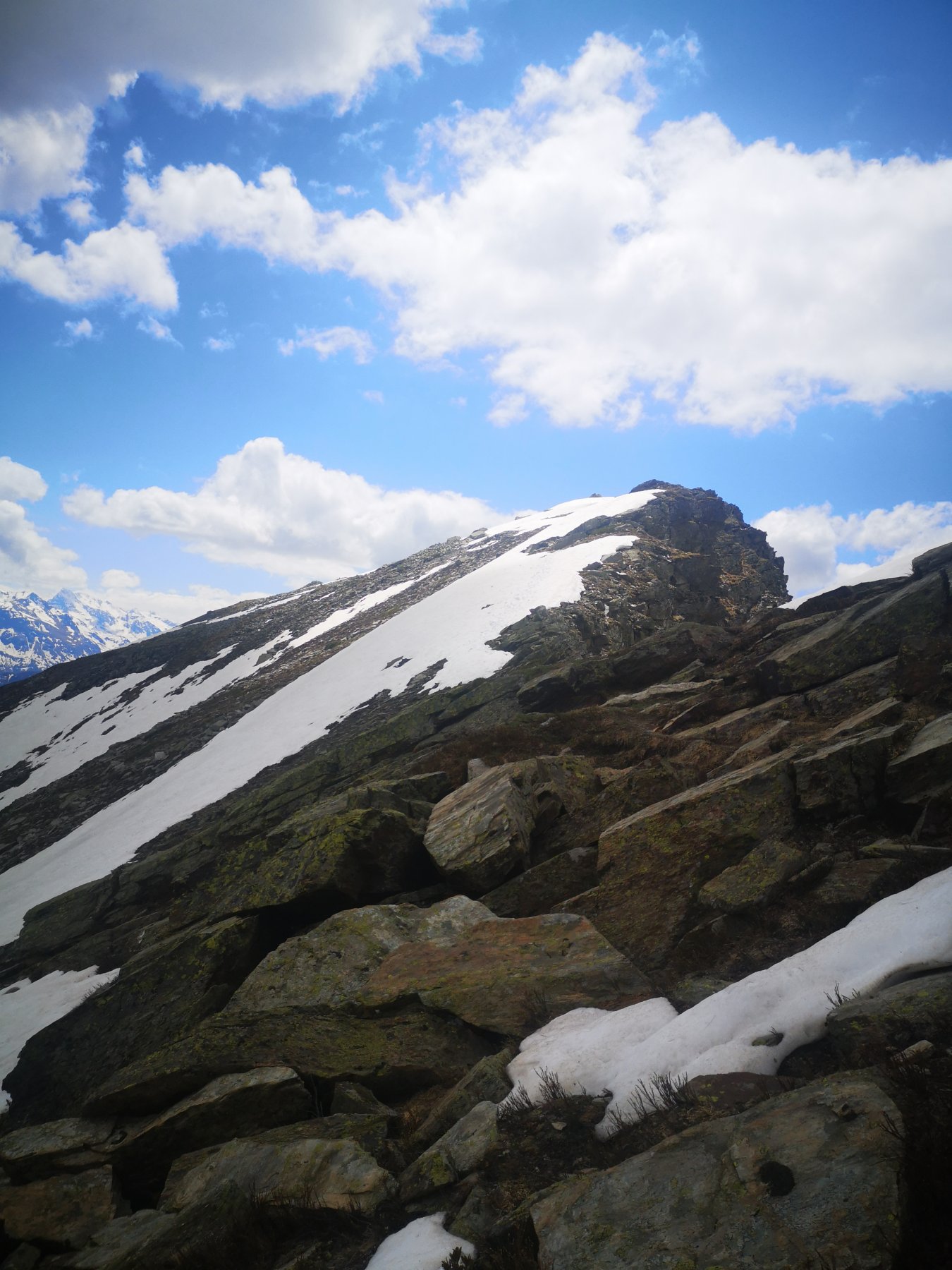Percorrerlo e prendere la cresta a sx , seguirla portandosi a dx fino in vetta.