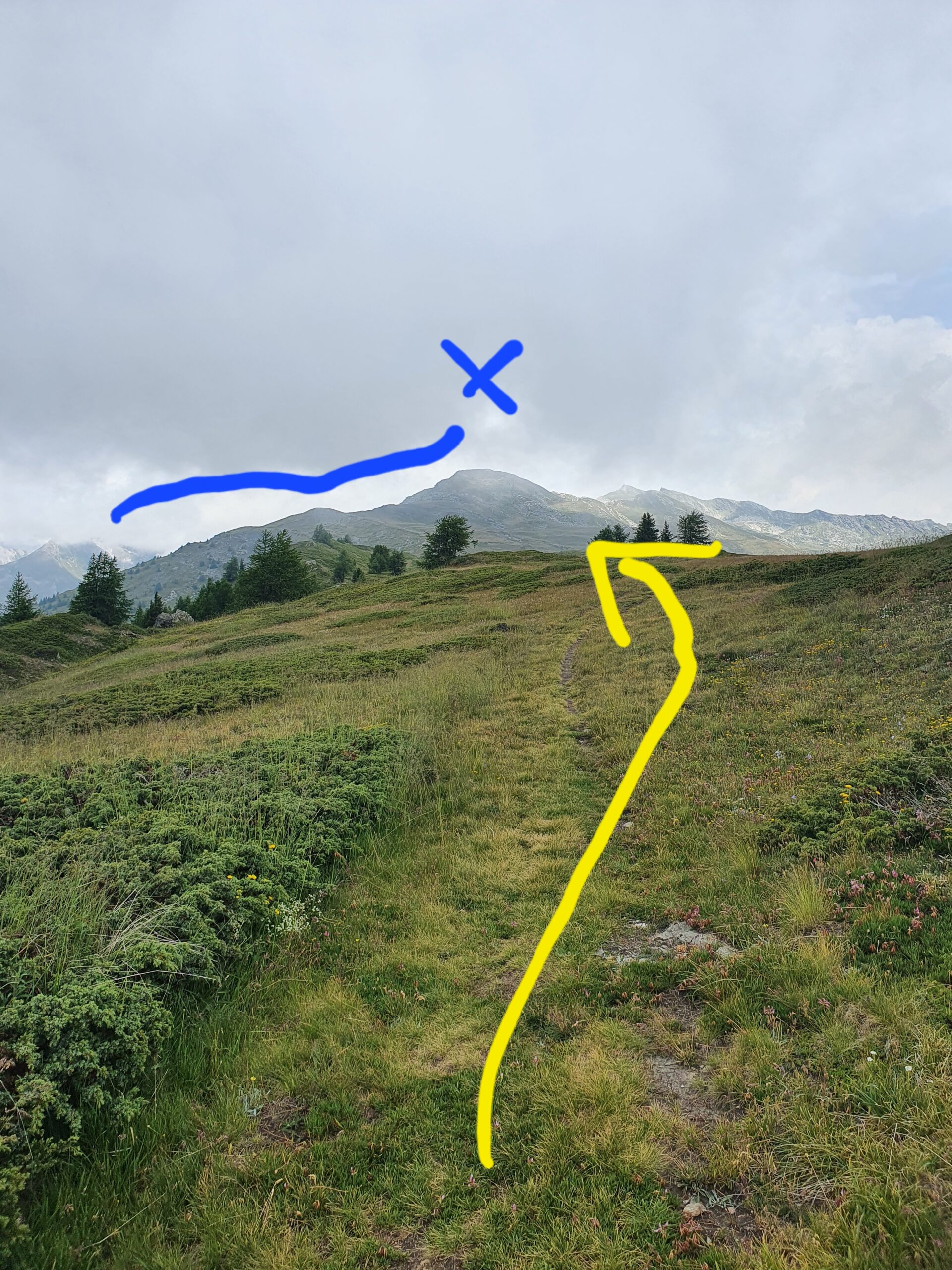 da Arpilles (fontana) parte il sentiero vero e proprio che porta al colle di Bard (2178).