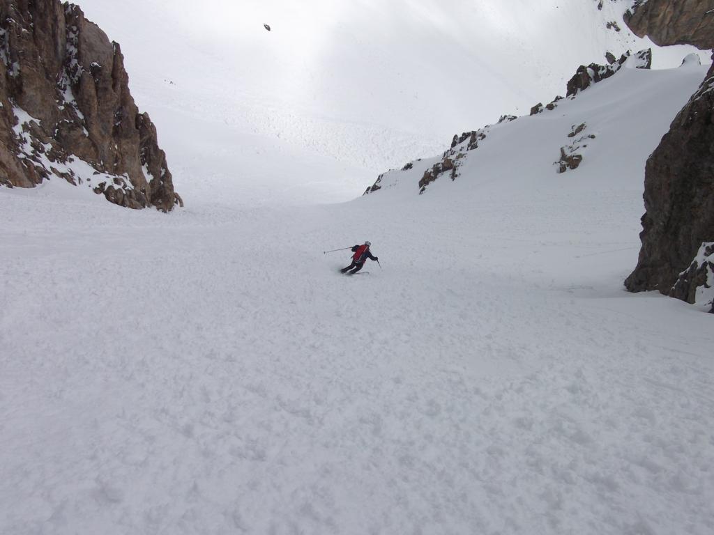 Peccato non aver salito anche il ramo sx ma temevamo il caldo, canale su pendenze tranquille, in ambiente di prim’ordine.