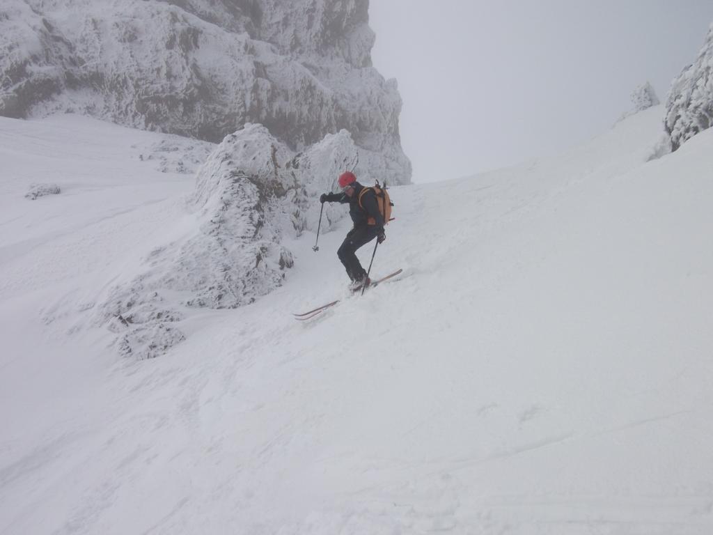 Poca neve fresca ma sufficiente a provocare discreti scaricamenti dai pendii rocciosi più ripidi, in effetti questa neve pesante non lega per nulla con il manto sottostante.