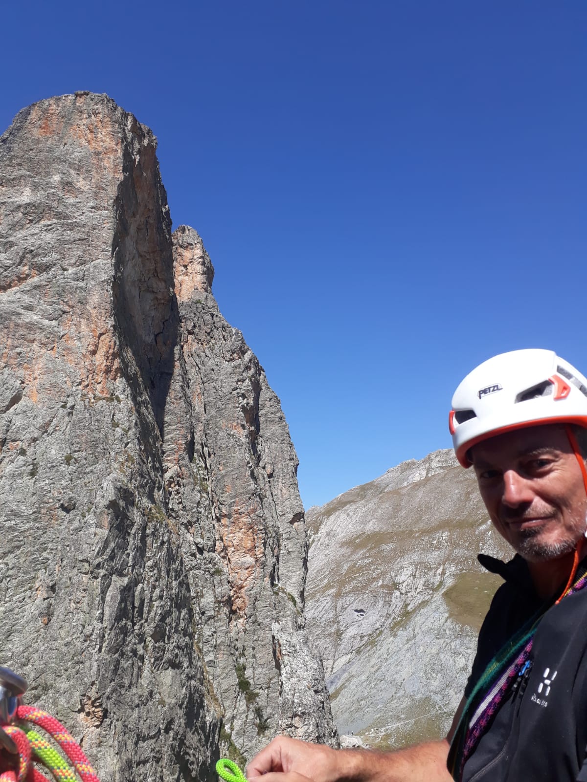 Bella via di fessura da non sottovalutare e non facile da seguire, direi che i gradi riportati nella relazione del libro di Massari sono un po’ stretti.