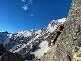 Dormito al bivacco Belloni, partiti alle 5:45 con le frontali in 40 minuti alla base dello sperone, Alle 12:00 in vetta.