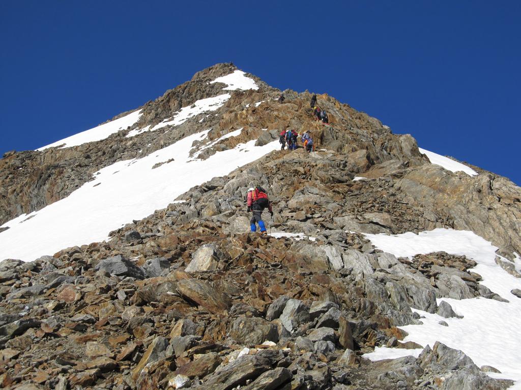 Casco consigliabile per la cresta, e piccozza e ramponi a inizio stagione.