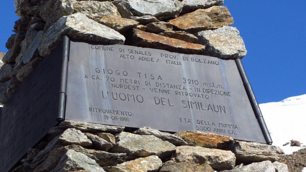 Seguendo tacche di vernice e ometti, ci si destreggia tra enormi blocchi e rocce montonate, attraversando nevai e con brevi saliscendi si raggiunge il grosso cippo al Giogo di Tisa, commemorante il ritrovamento di Otzi. Si continua facilmente in traverso da sinistra a destra su una morena, per raggiungere in breve il Giogo di Finale (evidente sella) che si affaccia sul ghiacciaio ormai nel versante austriaco. Da qui appare la mole piramidale della Punta di Finale.