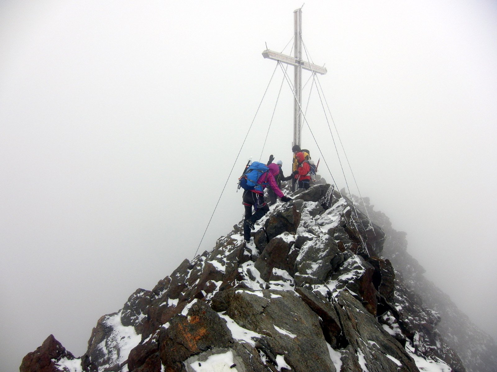 Visita sulle vette di Otzi con gli amici del Cai Almese. La leggera nevicata con l’increspatura di ghiaccio delle rocce ed il vento continuo ed alquanto freddo hanno reso un pò più alpinistica la cresta finale, con il panorama purtroppo un pò compromesso dalla nebbia vagante.