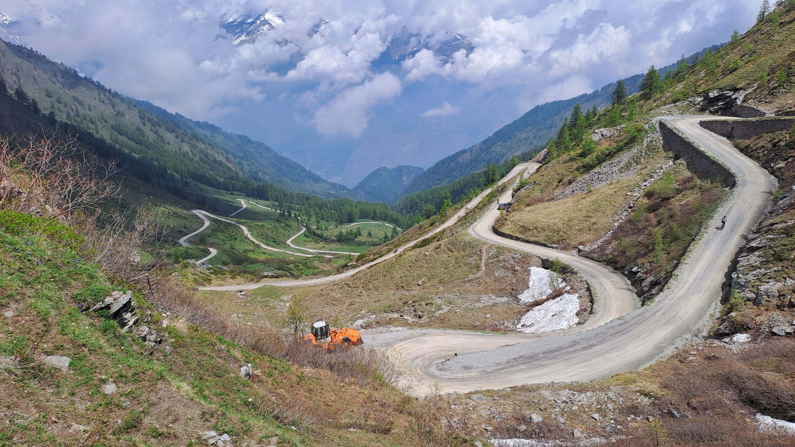 Si attacca in pieno sole attraversando l’abitato di Meana , poi ci si immerge in un fitto bosco , si affronta una sequenza di tornati molto ravvicinati, poi dove termina l’asfalto gli alberi lasciano posto ai pascoli .