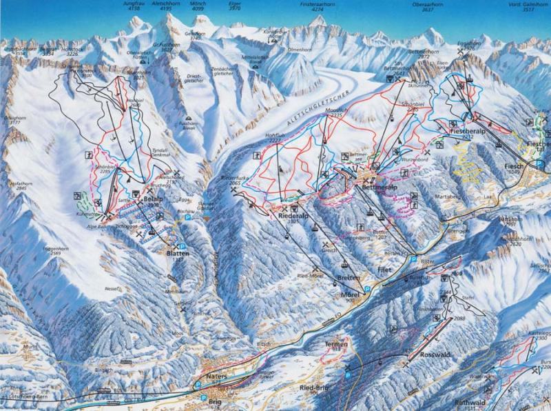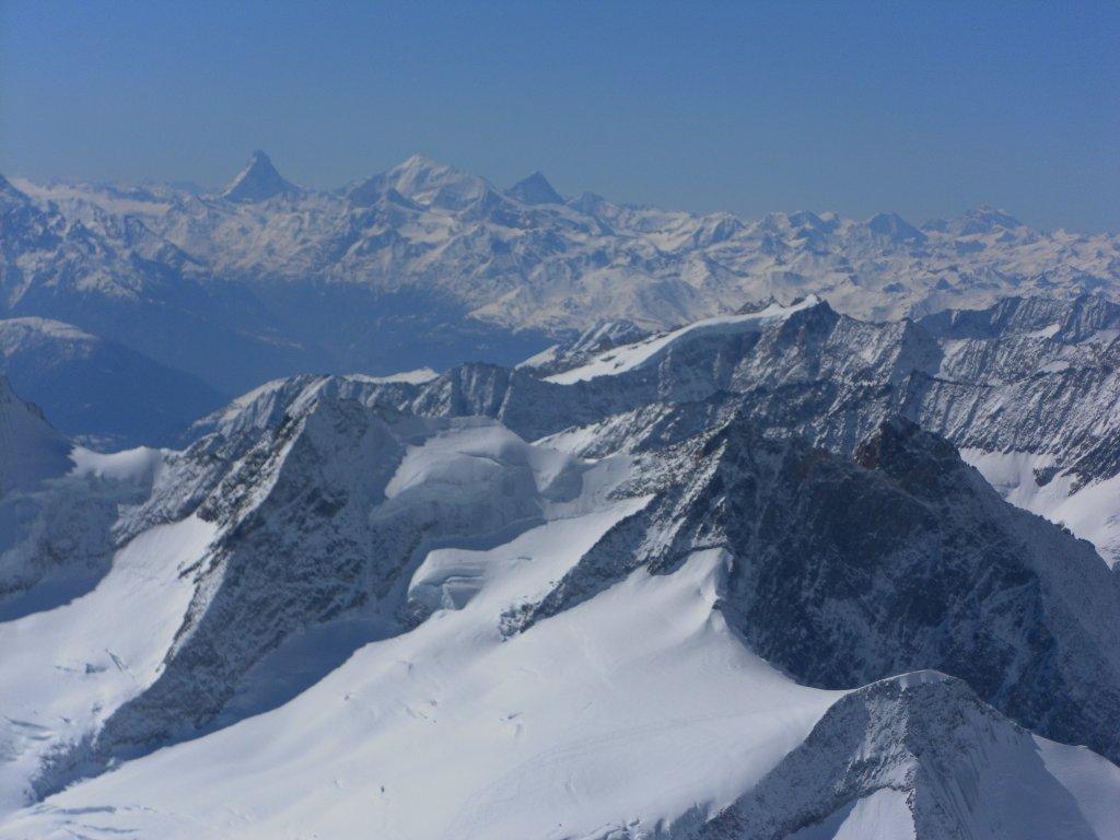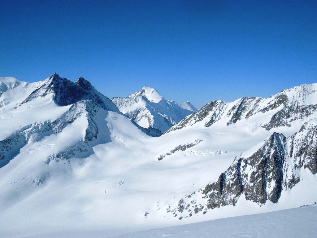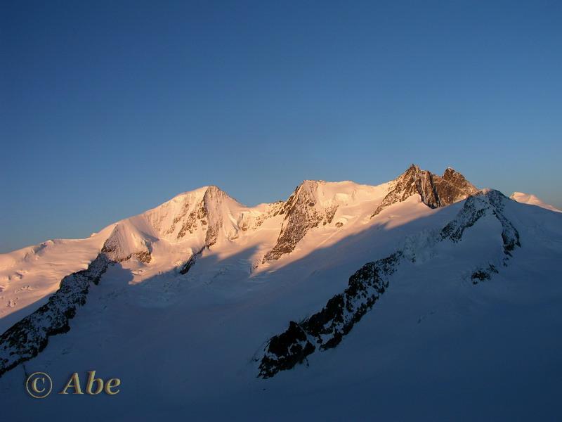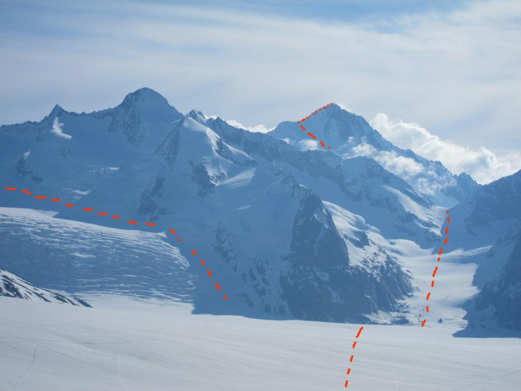 Gross e Hinter Fiescherhorn per il versante O della Fieschersattel e le creste SE e NO dallo Jungfraujoch
