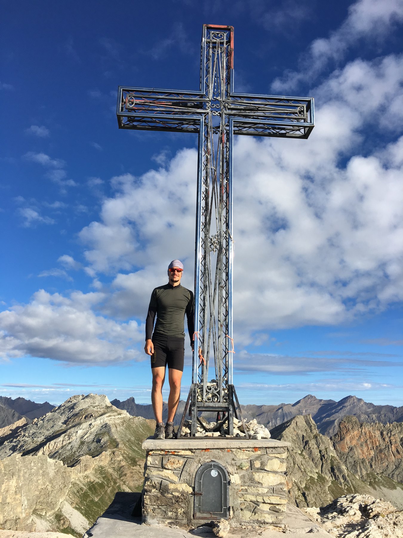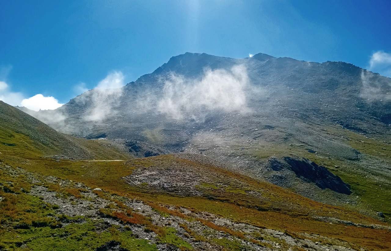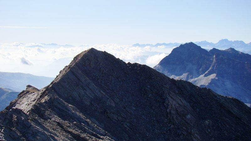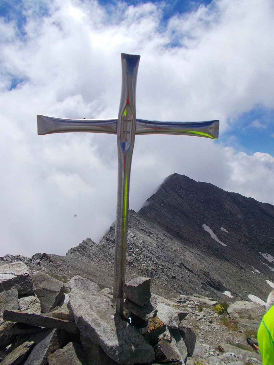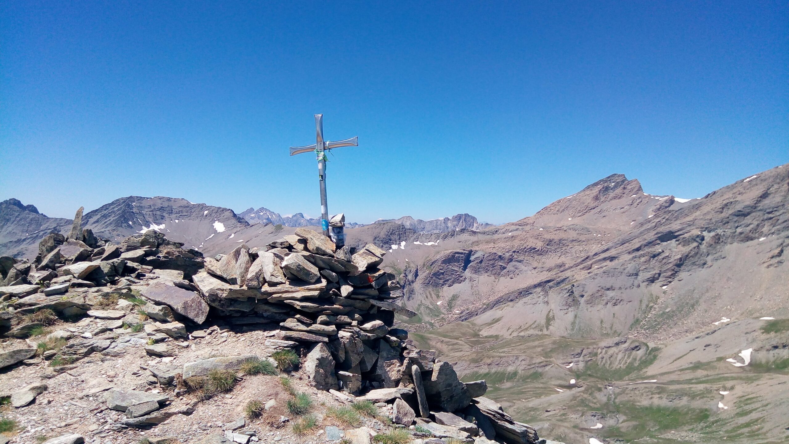 Con 20 minuti di facile camminata tra roccette e detriti si giunge in vetta (piccola croce) con il bel paesaggio e la punta del Ferra di fronte.