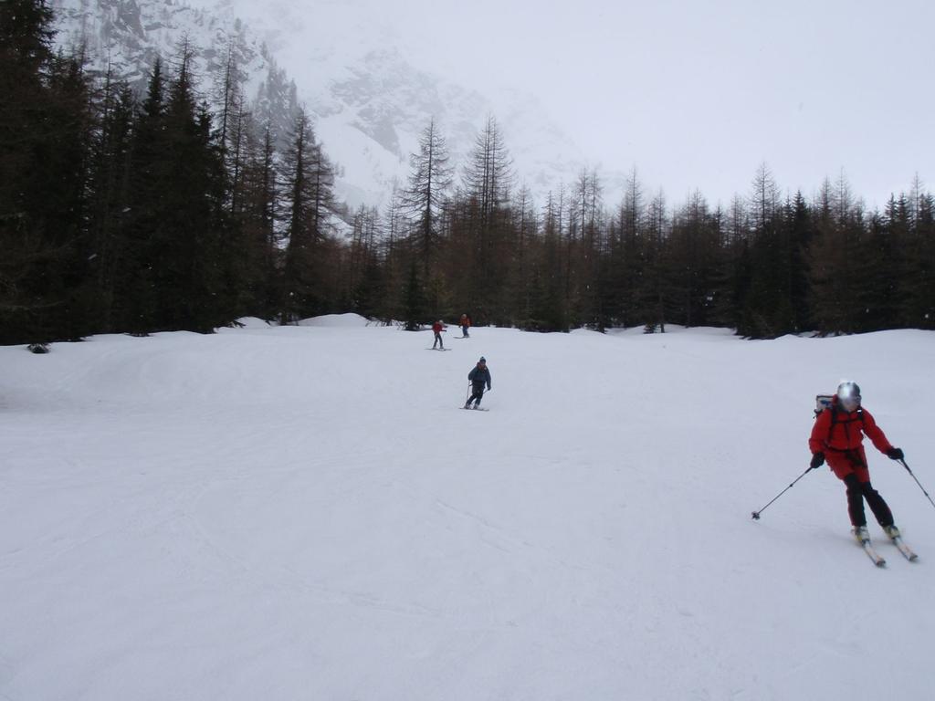 Partenza dal parcheggio 7,45 temperatura fresca ma gradevole poi alle baite il sole. Discesa tutto sommato di soddisfazione anche se sui bei pendii intermedi bisognava sciare un pò sulle uova perchè sotto il peso del sottoscritto ogni tanto sfondavano un pò.