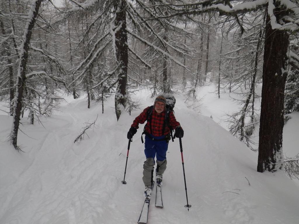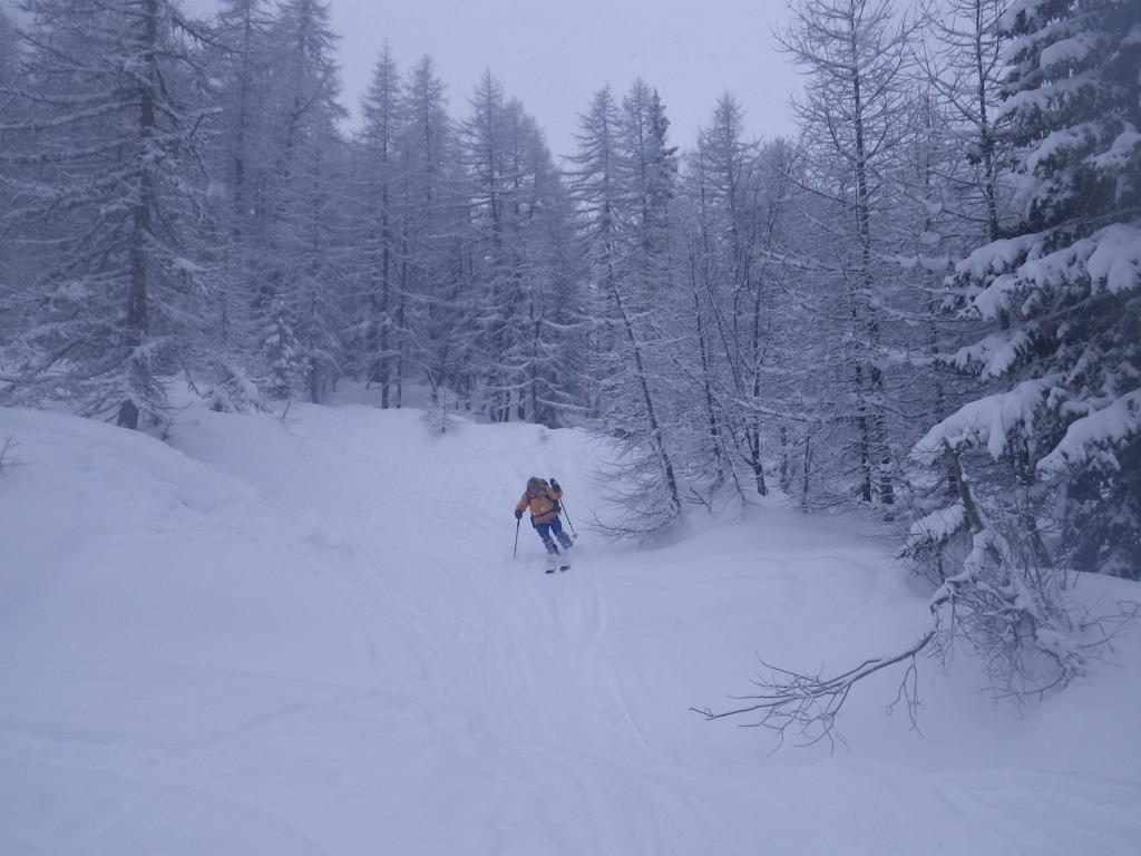 Discesa decente con poca visibilità sui bei pendii mediani e nel bosco.
