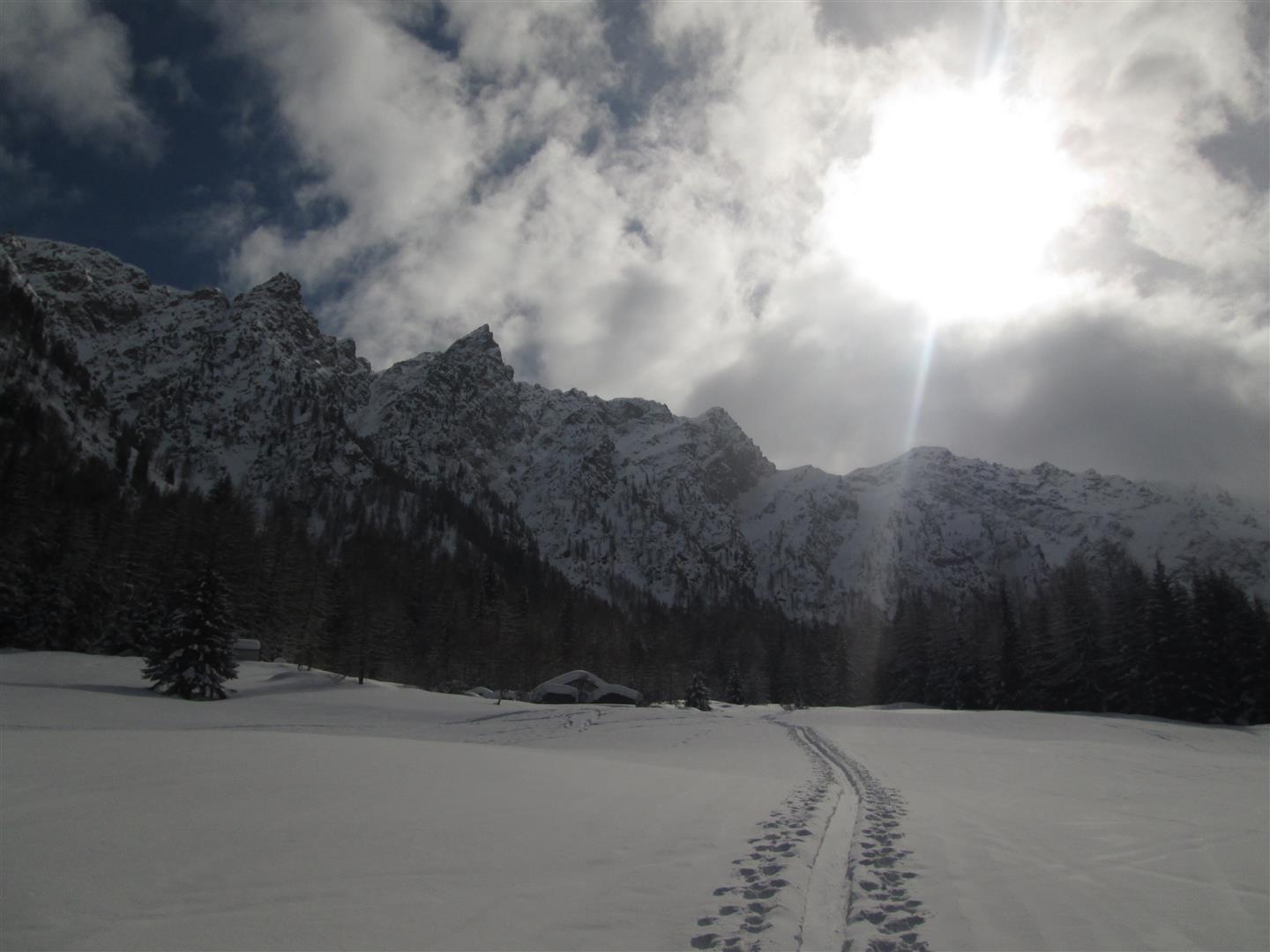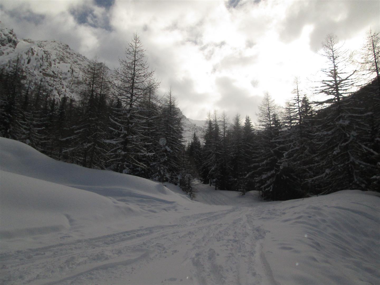 Vallone a me sconosciuto molto bello, ampio, suggestivo e quasi fiabesco pineta per la neve appena caduta.