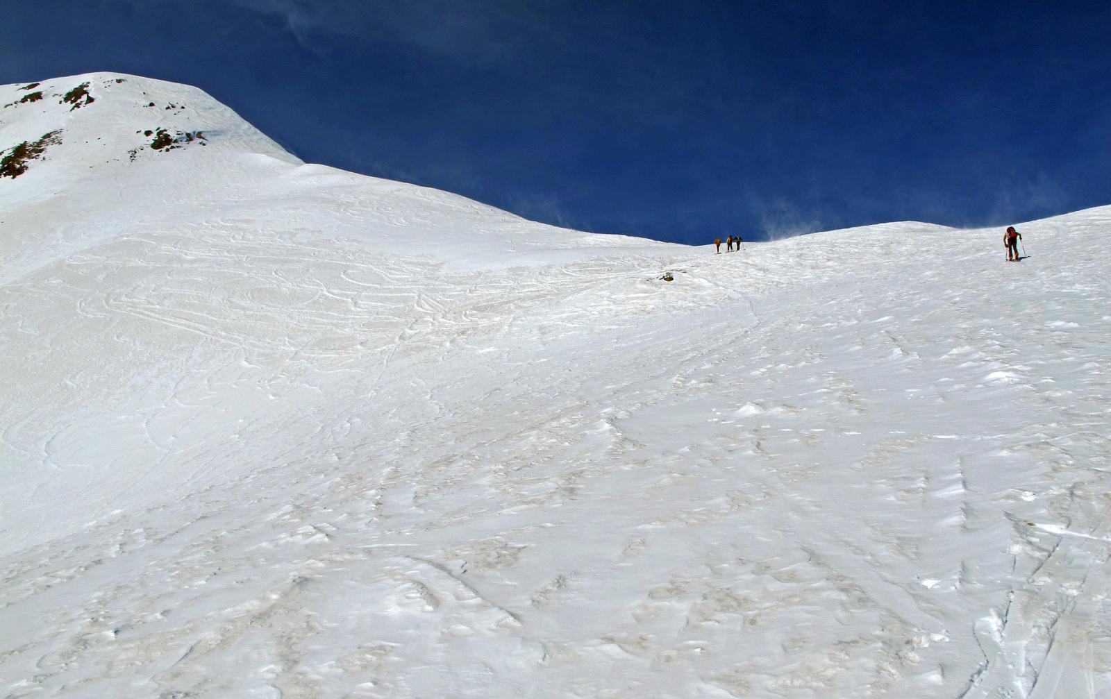 Vallone Flassin ancora in ottime condizioni,si portano gli sci per pochi minuti,poi neve continua.Il vento che ha soffiato alla partenza e poi oltre il colle ha mantenuto una temperatura fresca,ne è uscita una discesa bellissima praticamente dal colle fino all’ultima lingua di neve.9 Evergreen sul percorso + 2 partiti anticipatamente,salita a piedi la punta sciistica,poi in 4 sulla punta alpinistica,successivamente anche gli altri 2.Spostandosi un pò dal percorso classico,ancora ampi spazi da tracciare.Oggi gita veramente azzeccata,ancora consigliata per i prossimi giorni.Un saluto a tutti gli amici con i quali ho condiviso la gita,un vero peccato per chi oggi non ha potuto essere della partita.Buone gite a tutti.