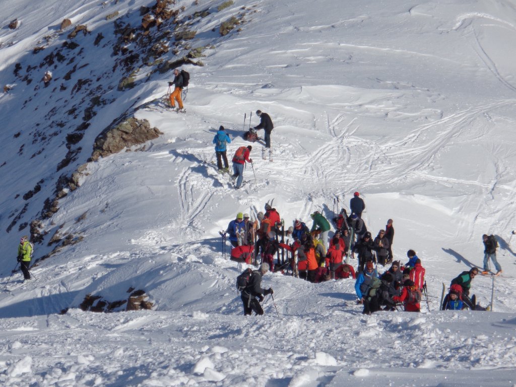 Come molti mi sono fermata a 30m dalla punta; chi proseguiva coi coltelli, chi con sci a spalle con o senza ramponi.