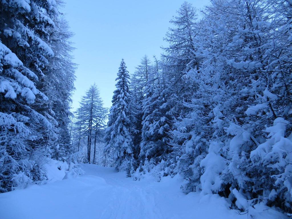 Neve farinosa e bosco da favola imbiancato, traccia battuta; finalmente stavolta ho raggiunto la cima sci-alpinistica.
