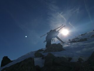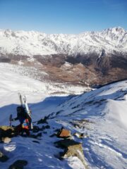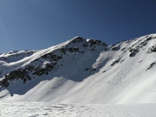 Partiti senza grosse aspettative e con una grossa paura del rialzo termico previsto per oggi (temperature folli). Siamo saliti tracciando la via dal canale a destra dell’alpeggio per poi virare tutto a sinistra fino in vetta.