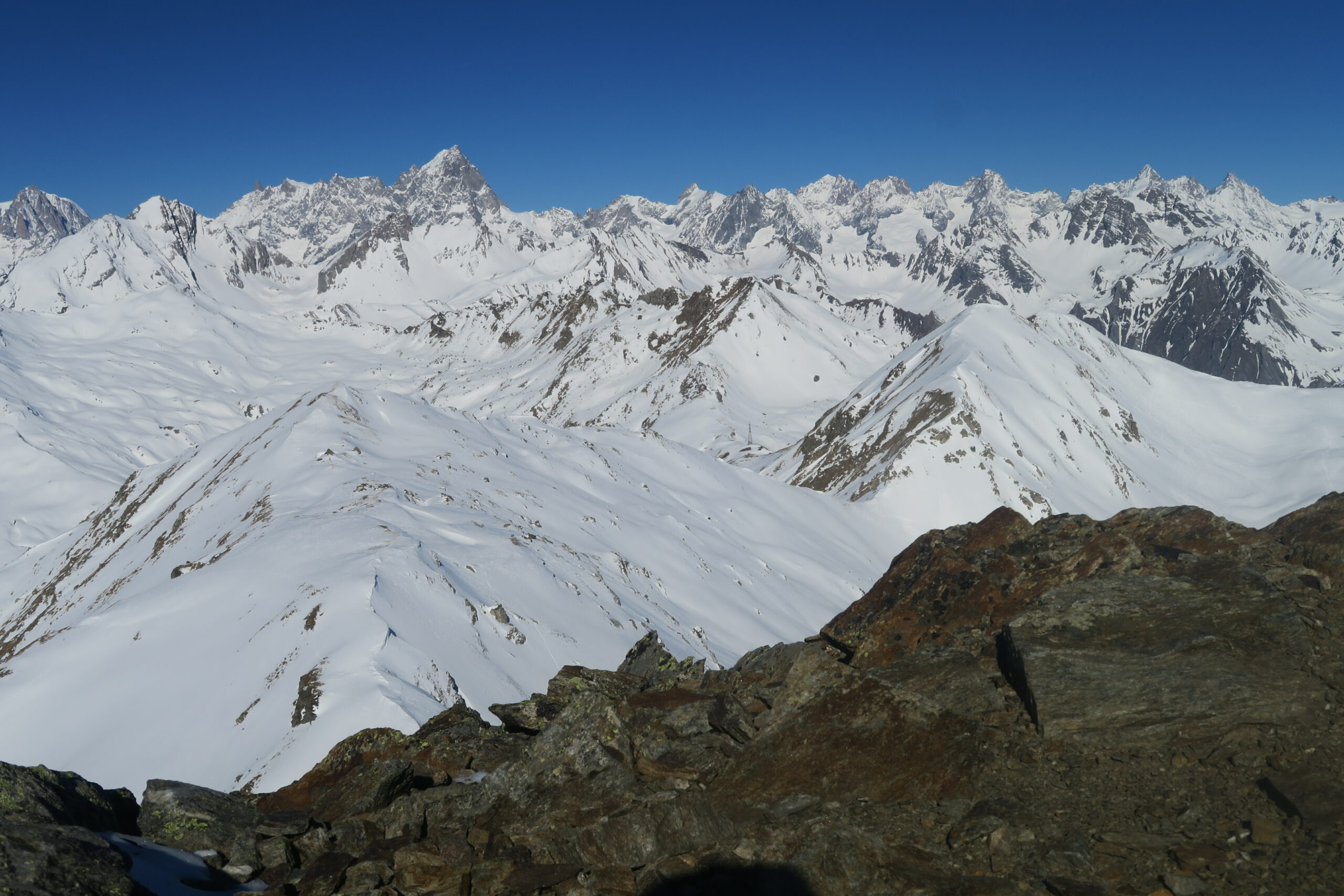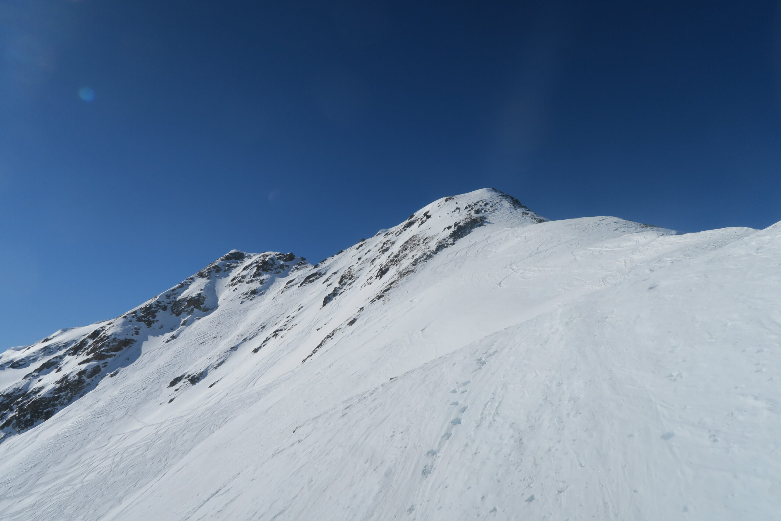 Ripellato e salito al Mont Flassin passando per l’anticima utilizzando i ramponi per maggiore tranquillità lungo la cresta.