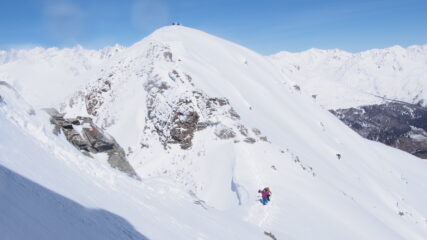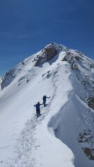 Saliti all’anticima sci ai piedi e battuto traccia a piedi (no ramponi) sulla cresta fino alla vera vetta così da rendere la gita un pò più completa 🙂