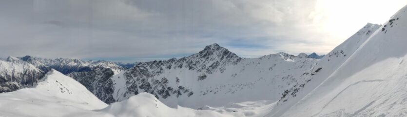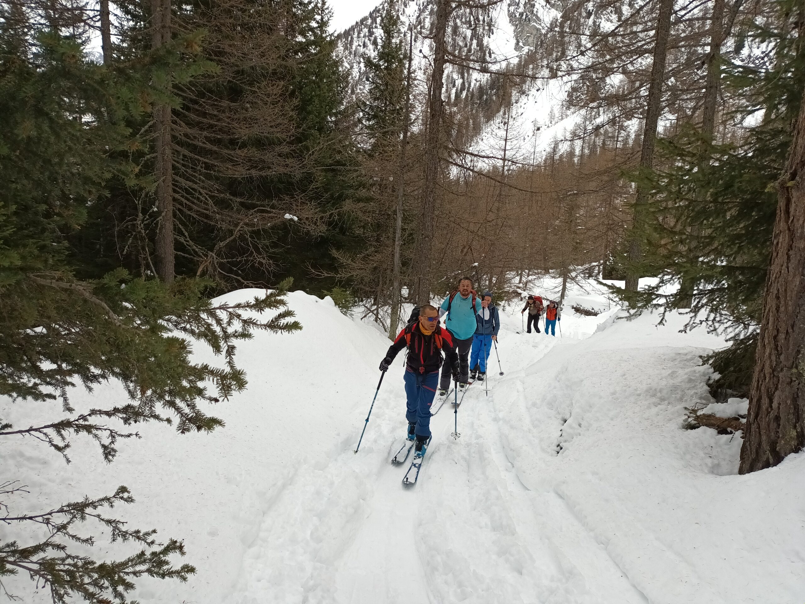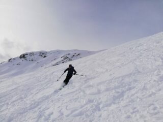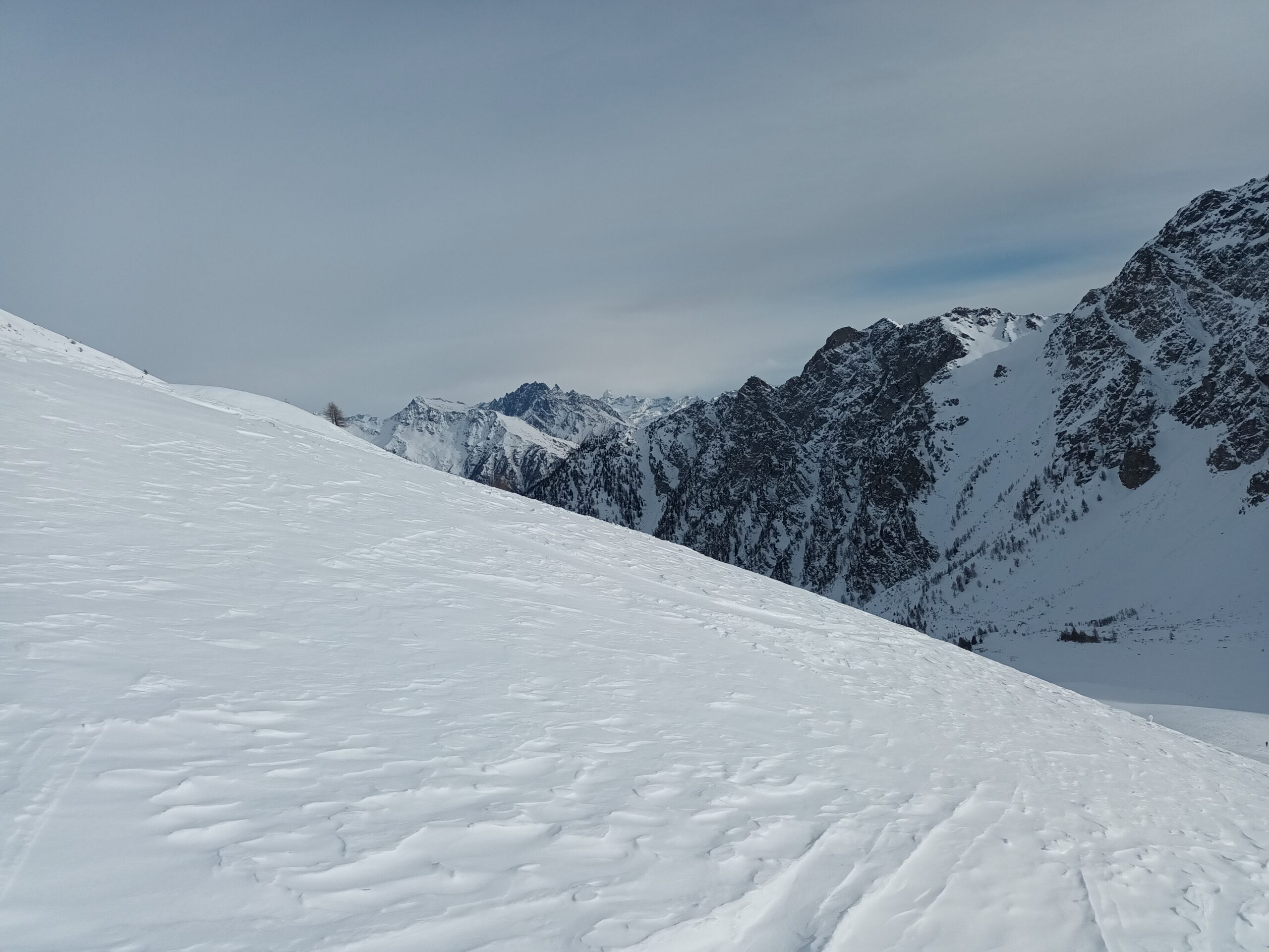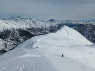 Molta gente oggi su questo gettonatissimo itinerario. Cielo con velature e qualche sprazzo di sole. Percorso ovviamente tracciatissimo fino a pochi merri sotto l’anticima dove ci siamo fermati. Rampant utili nell’ultimo tratto di salita. Cresta per la vetta affilatissima e non tracciata. Discesa complessivamente buona con neve farinosa ma ventata alle quote più elevate. Manto comunque sempre ben sciabile, con rari tratti di neve crostosa. Bella la discesa nel bosco. I protoni finali sono ben coperti e non si toccano pietre. Con Luca M., Matteo, Luca C., Franco e Tullio, il clan dei Casalesi al gran completo e tantissimi altri amici. Merenda finale alla Gabella di Gignod.