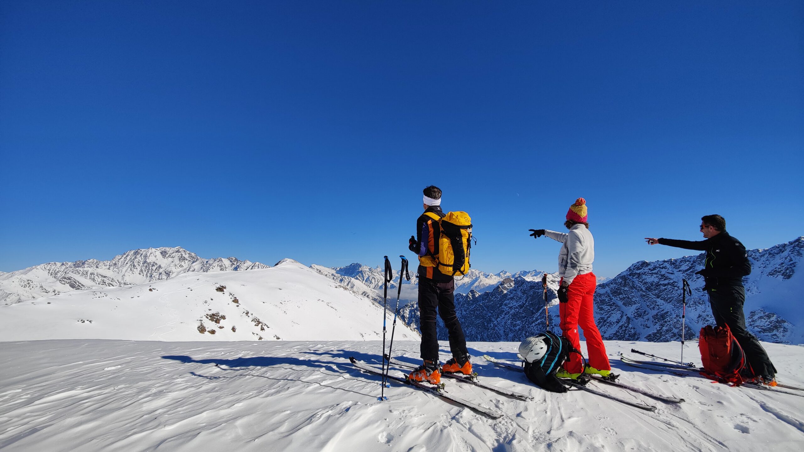 Arrivati vicino al colle (quota 2560) prendiamo a destra pensando di andare alla nostra meta e invece ci troviamo su un bellissimo panettone a quota 2600. Torniamo indietro e saliamo al deposito sci del Flassin senza raggiungere la vetta. Poteva valer la pena salire per scendere nel canalino sotto la cima ma non avevamo la giusta motivazione. Abbiamo visto persone scendere ed era un bello spettacolo. In discesa cerchiamo la polvere e la troviamo solo a tratti (altri tratti di neve più pesante e crosta leggera). Sotto le malghe torniamo nel frigo del Flassin e la neve è fantastica e leggera. Discesa divertente nel bosco rado, un po’ di strada e poi di nuovo divertente nei prati finali.