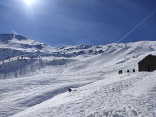 Salito solo fino all’ultimo alpeggio prima della spalla. Ancora un po’ di polvere in alto. In basso ancora per poco sci ai piedi dalla macchina. In salita neve dura che poi col sole si è trasformata. Discesa cercando l’esposizione a sud. Ormai quasi tutta battuta ma in alto ancora qualcosa si trova. Attenzione a un tronco sul tragitto.