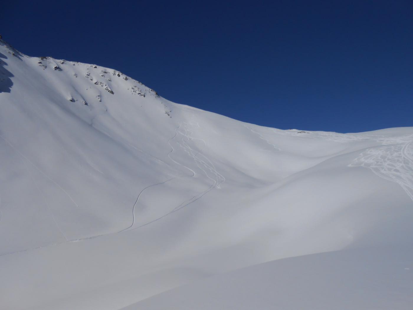 Di nuovo al Flassin, rubando una giornata al lavoro e all’ennesimo maltempo preannunciati per il week. Solito freezer dal foyer per circa 1 ora e 45 minuti, poi caldo sole e niente vento. Traccia bella dritta, saliti senza difficoltà sulla cima scialpinistica, il tratto per quella vera ci è sembrato un po’ troppo carico di cornici. Tanti skialp, panorama e giornata spaziale, neve divertente in discesa. un grande plauso al nostro amico vipi che oggi ha sfoderato tutta la sua grinta sull’entrelor