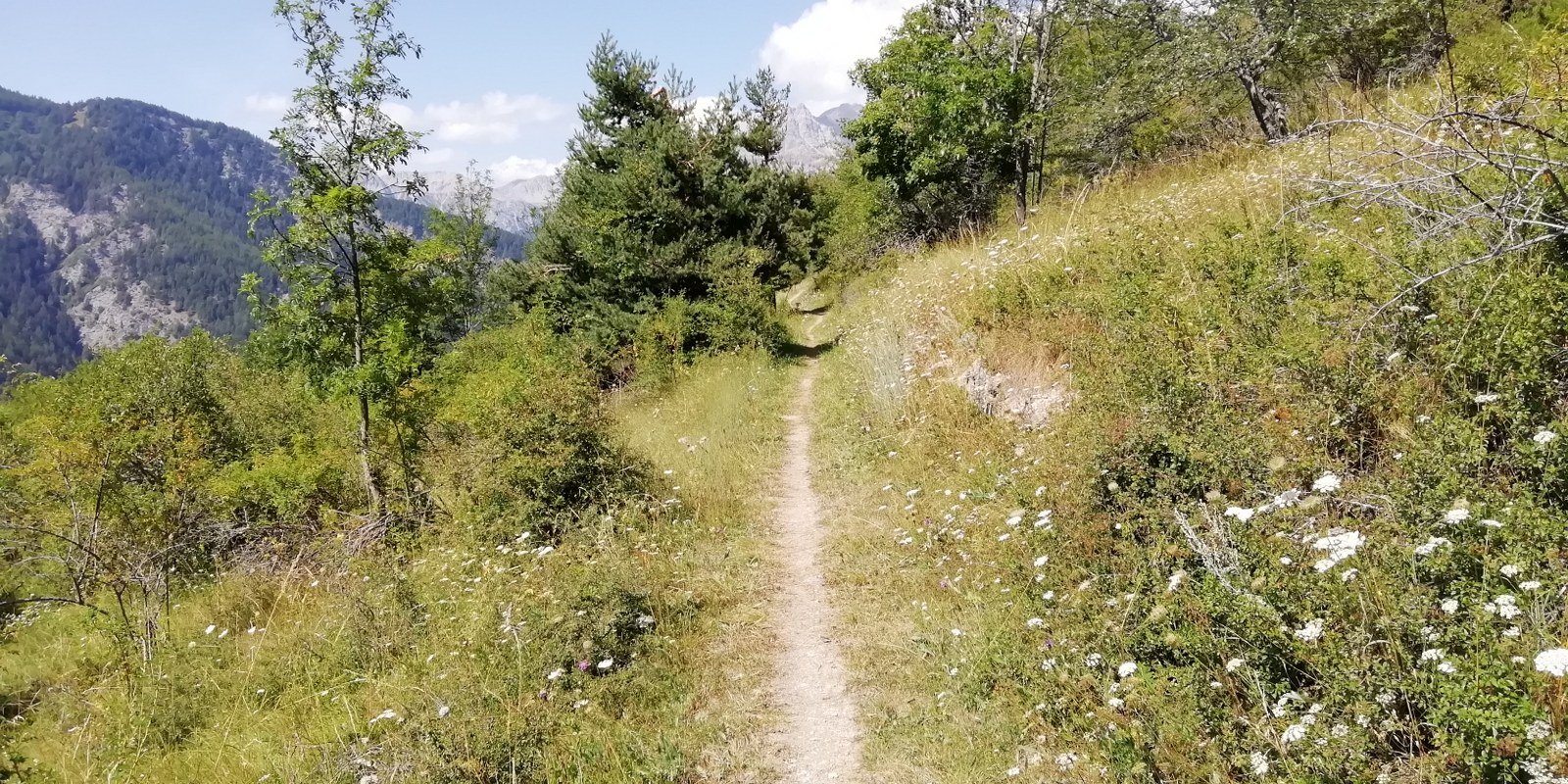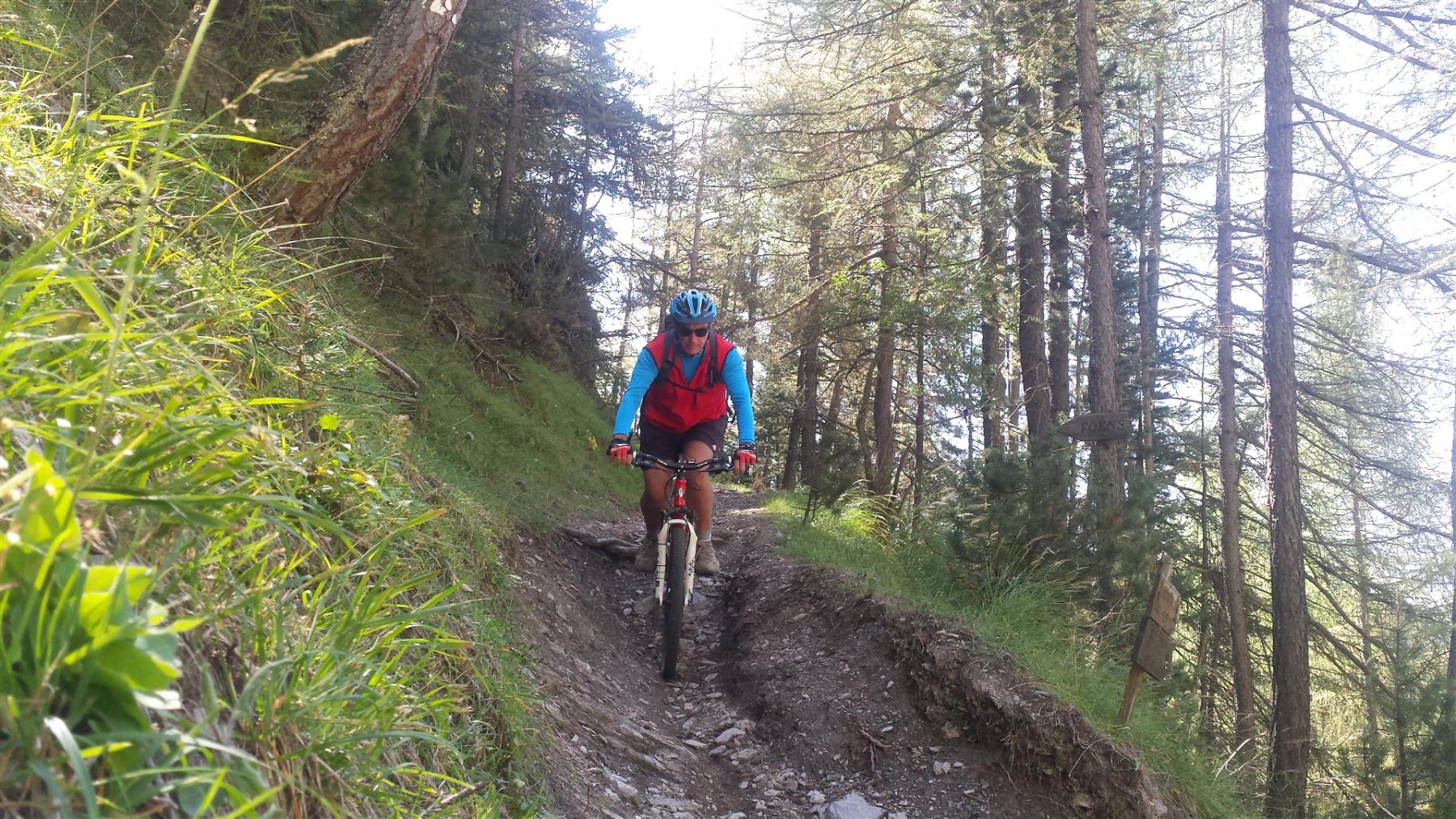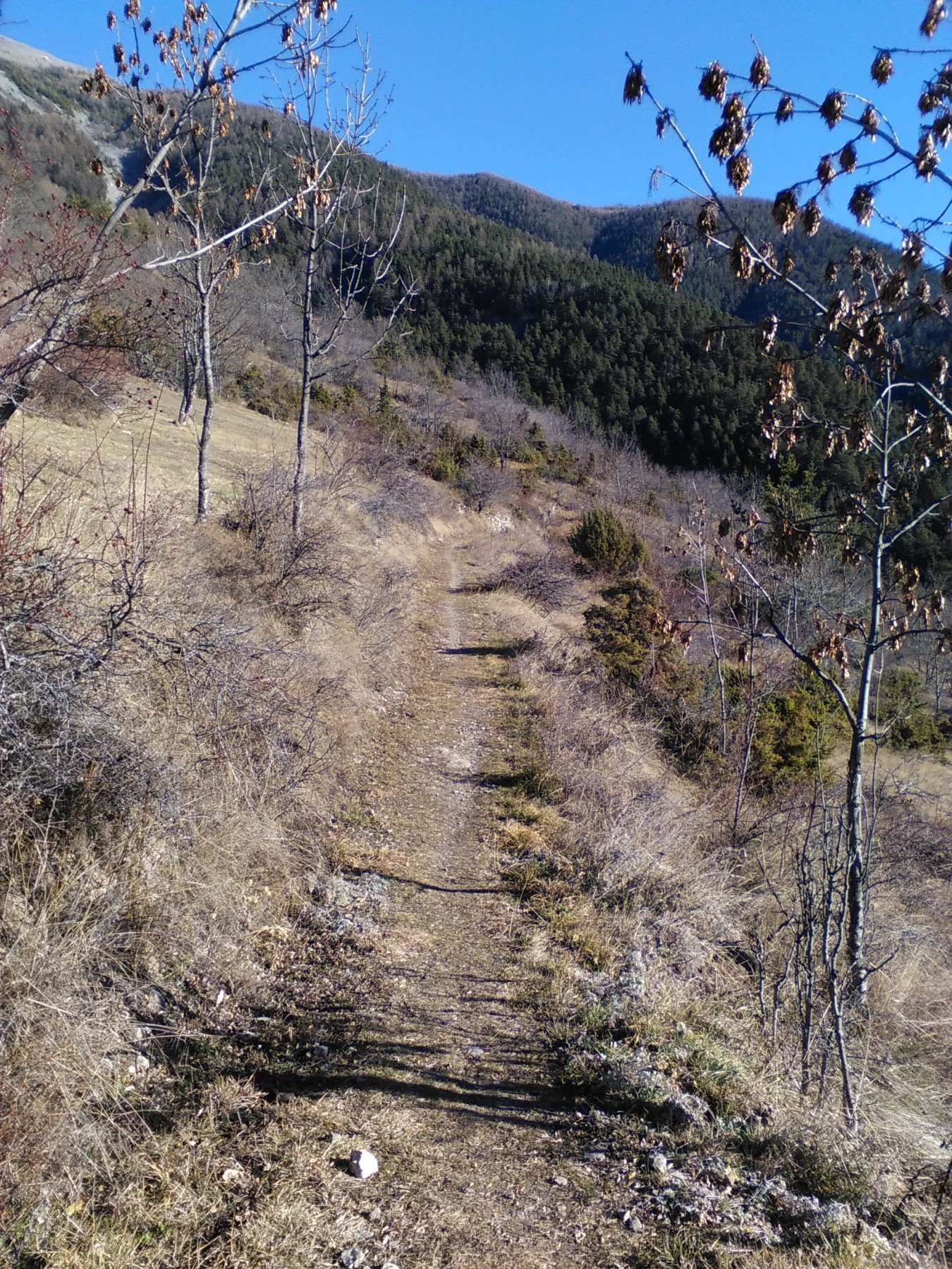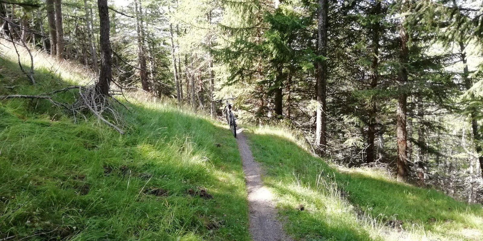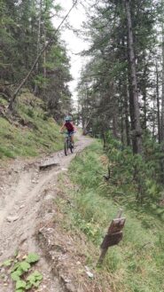 Proprio di fianco all’ingresso del forte prendere sulla sinistra il sentiero indicazioni Millaures / Suppas, sempre molto evidente e ben segnalato (sono presenti anche cartelli indicatori MTB della Federazione Francese). La discesa si svolge quasi interamente in uno splendido bosco di conifere, il sentiero è bellissimo e interamente ciclabile, presentando solo pochissimi e brevi passaggi più impegnativi per fondo e pendenza.