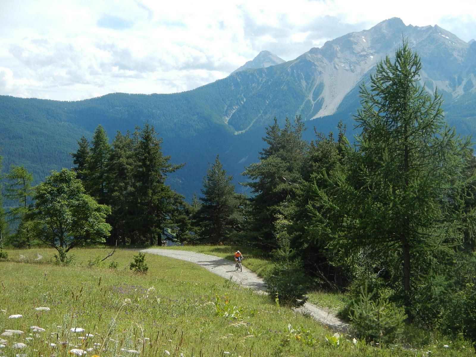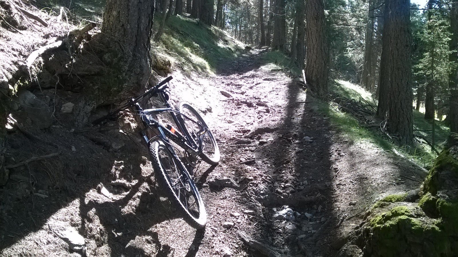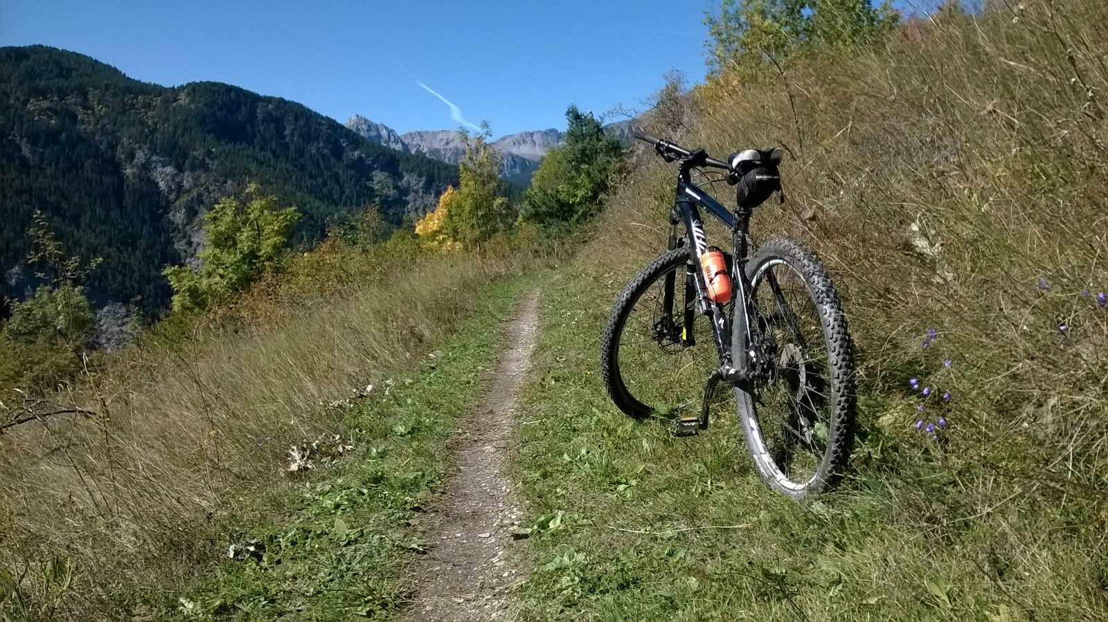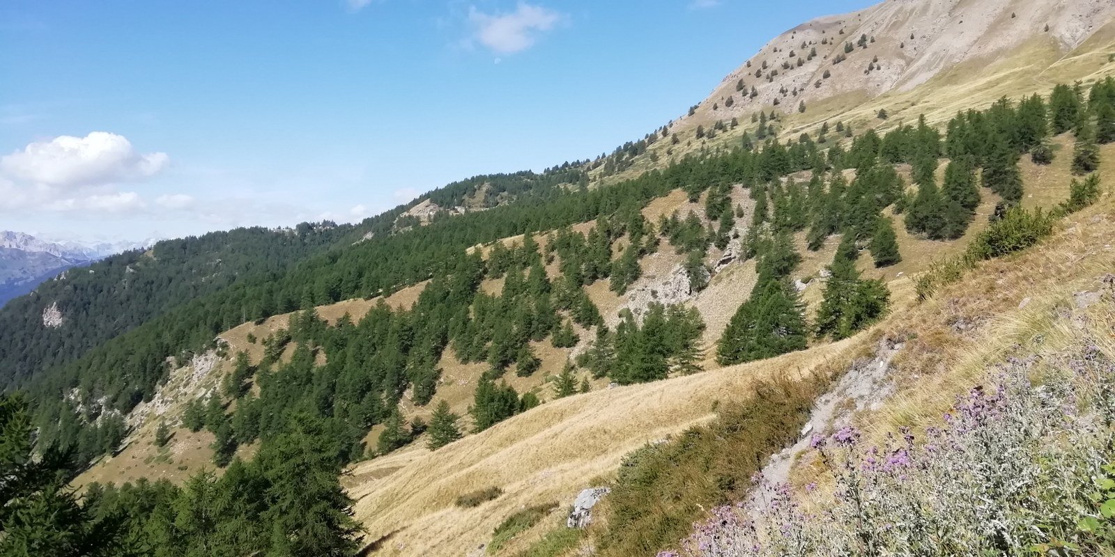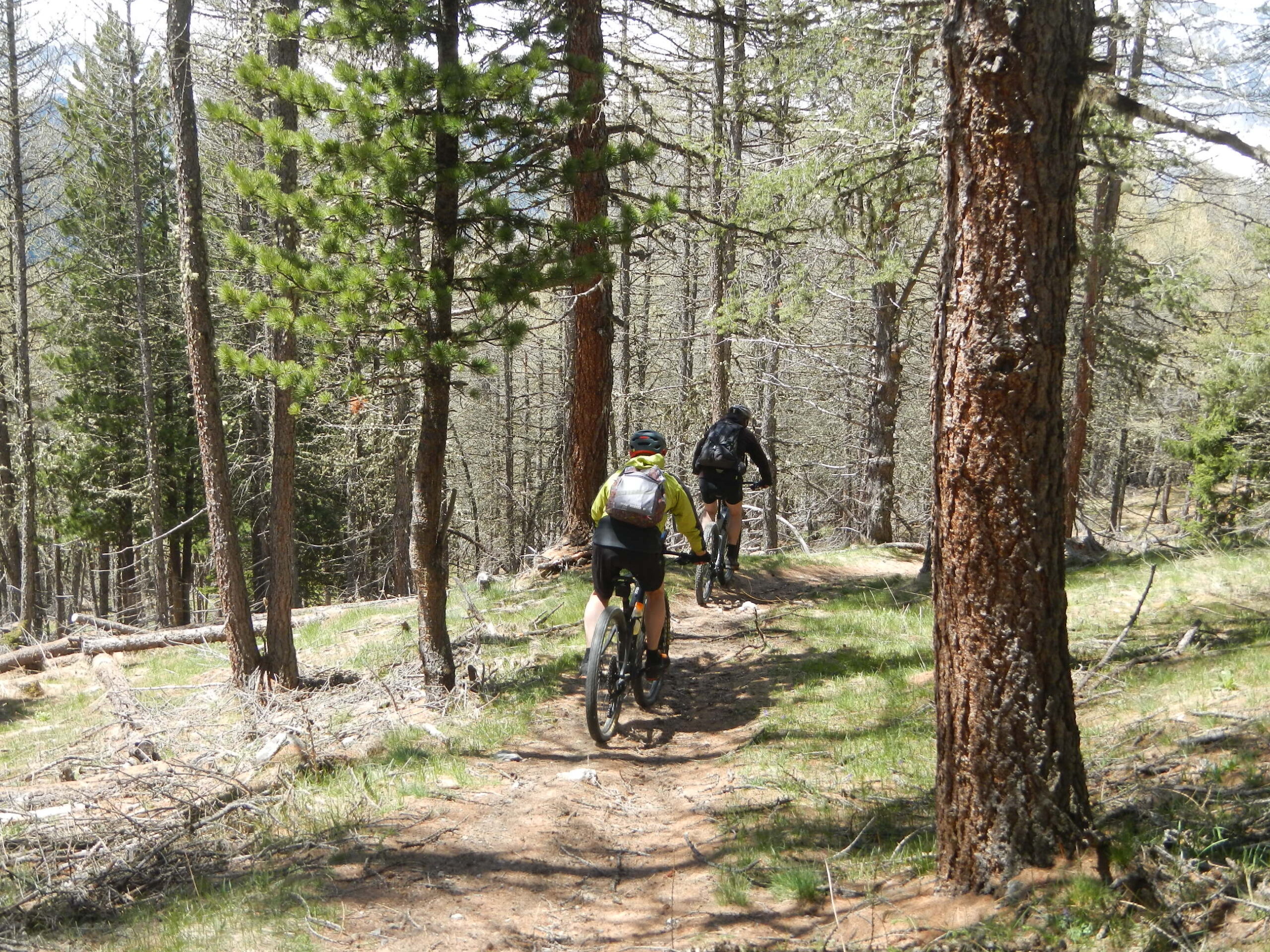 Proprio di fianco all’ingresso del forte prendere sulla sinistra il sentiero indicazioni Millaures / Suppas, sempre molto evidente e ben segnalato (sono presenti anche cartelli indicatori MTB della Federazione Francese). La discesa si svolge quasi interamente in uno splendido bosco di conifere, il sentiero è bellissimo e interamente ciclabile, presentando solo pochissimi e brevi passaggi più impegnativi per fondo e pendenza.