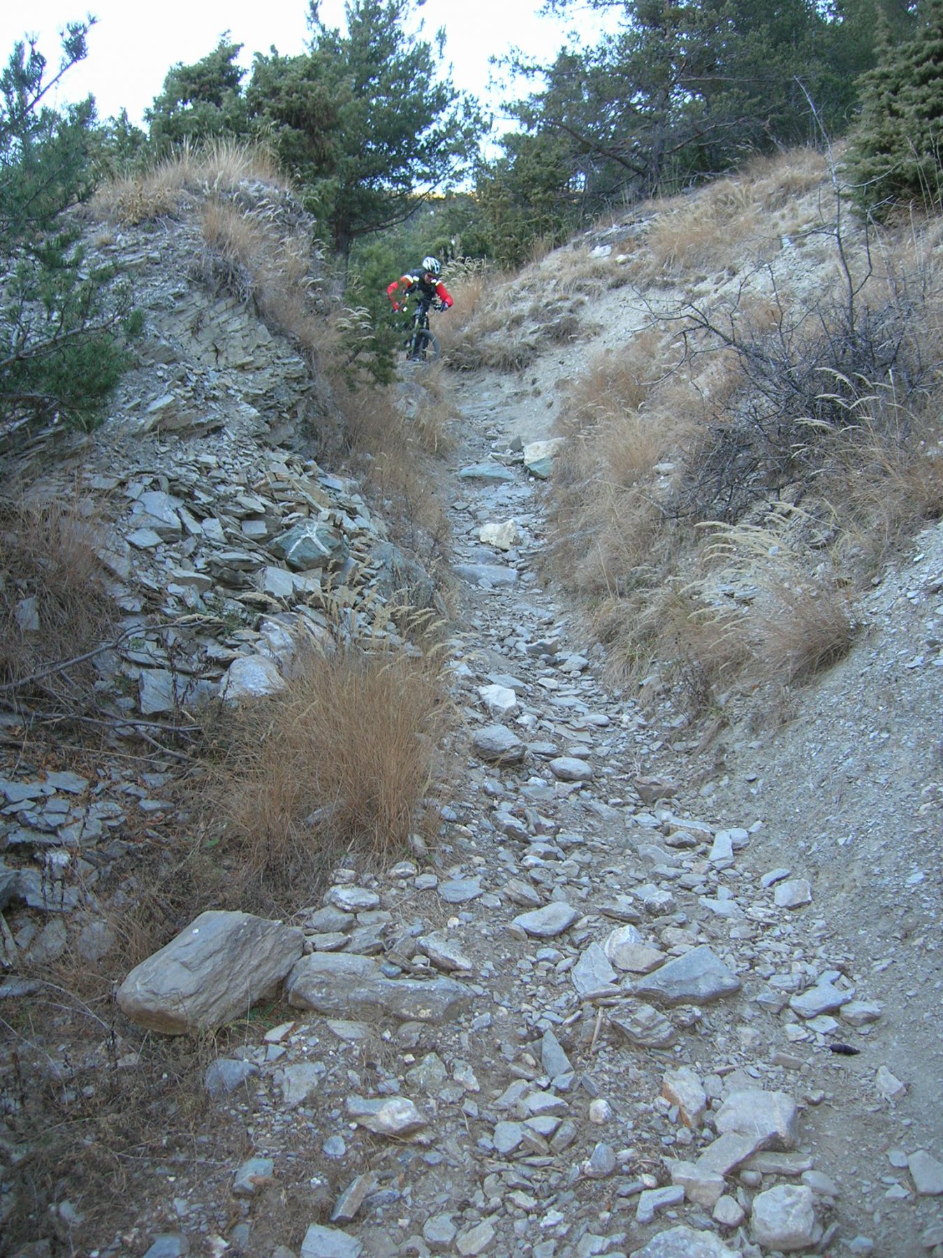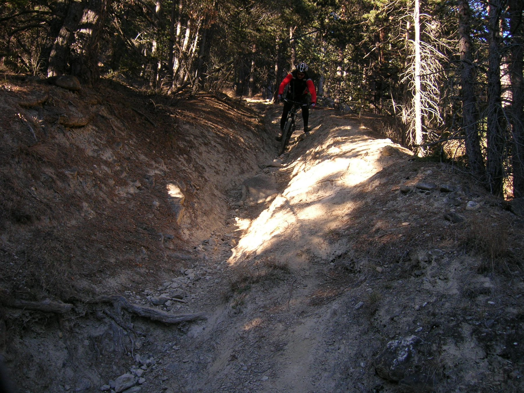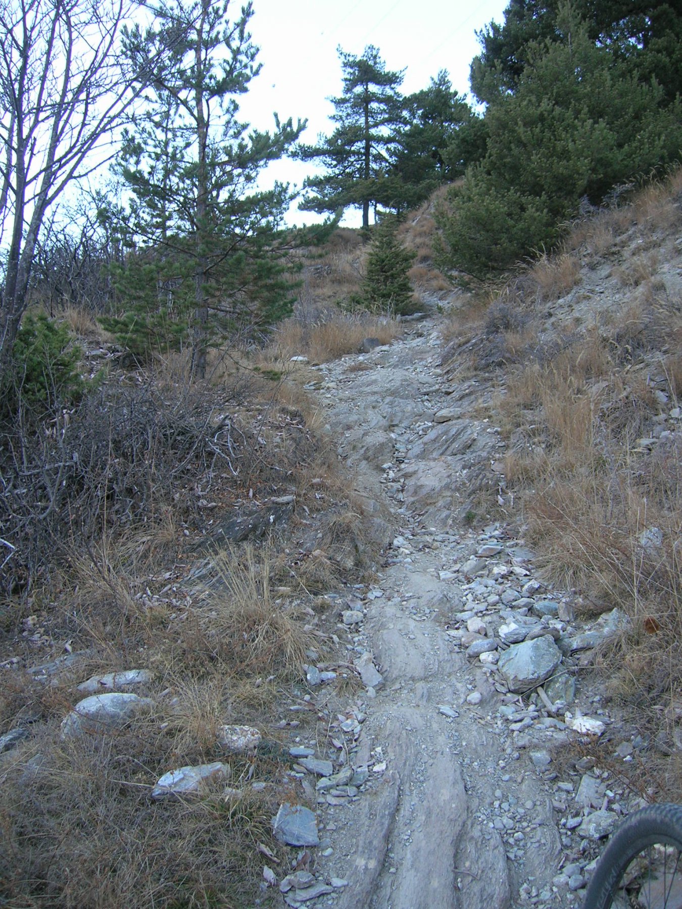 Discesa con variante 😀 inizialmente verso le Grange Suppas con fondo scorrevole e compatto (S1) solchi continui abbastanza profondi di moto e quad ma se percorsi con attenzione nn danno fastidio.In prossimità di un tornante verso dx (dopo circa 1km) abbiamo tirato diritto su sentiero meno battuto almeno inizialmente con difficoltà in prevalenza S1,tratti S2 e fondo abbastanza smosso ogni tanto, che conduce a Foens; da qui continuato tra le case e preso il sentiero (fantastico) che porta a Costans: ora la musica cambia radicalmente..fondo in prevalenza molto smosso con pietre sovente abbastanza grosse e gradoni parecchio alti,canaline profonde e strette delle moto e tratti rocciosi (S2 in prevalenza,brevi ma intensi singoli di S3). Le difficoltà maggiori sono tutte concentrate nel bellissimo tratto finale con passaggi veramente belli e interessanti!!