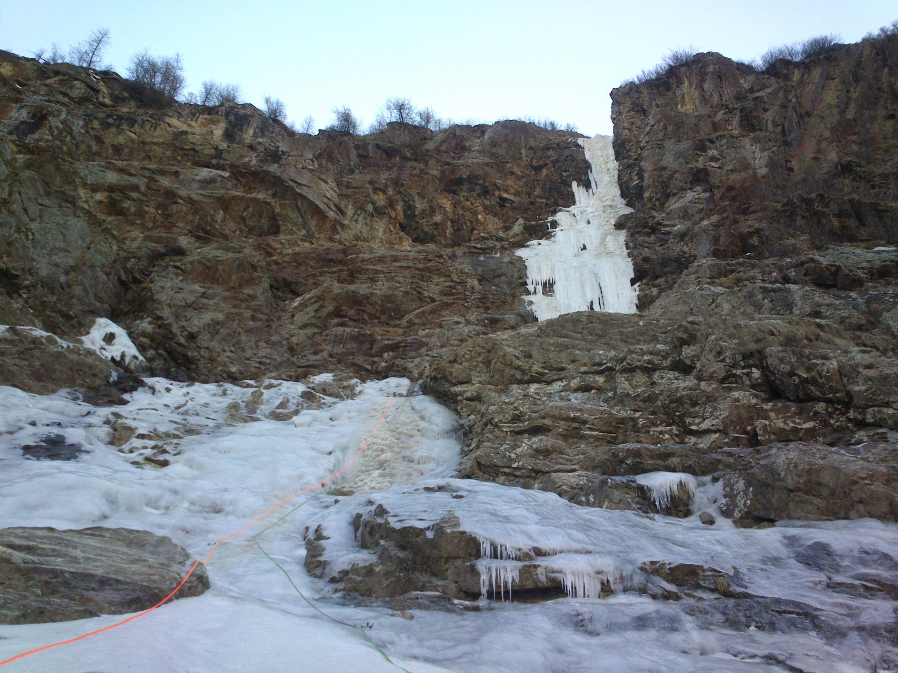 Salire in una lunghezza il primo muro fino all’inizio del canale che porta al secondo muro il quale si supera in due lunghezze.