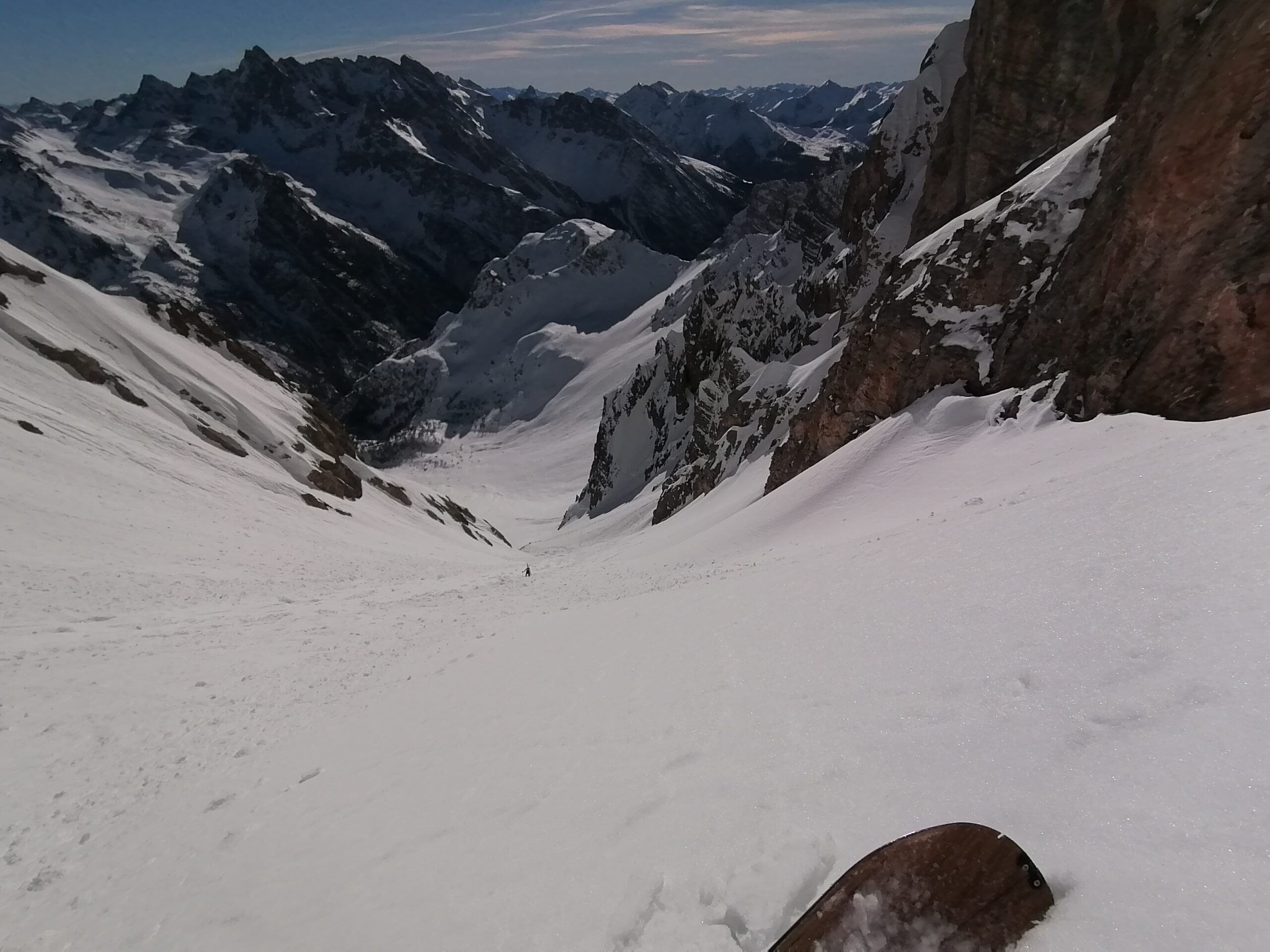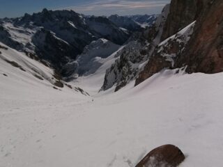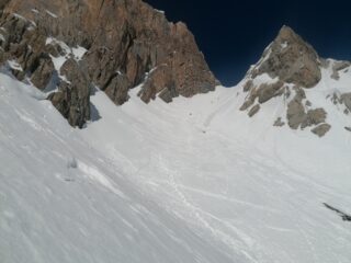 Sceso a mezzogiorno con neve da lacrime sulle contropendenze del canale e anche dopo sempre stupenda fin quasi alla fine. Neve dalla macchina.