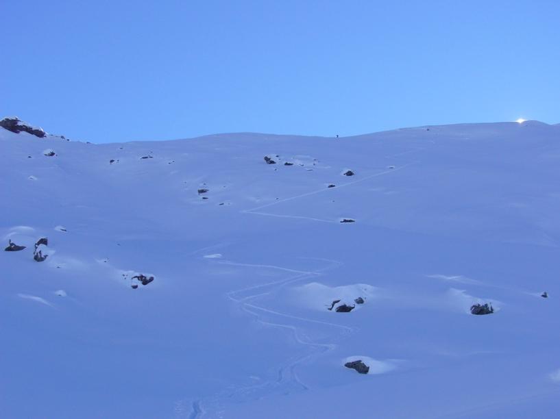 Ambiente montano molto bello. Battuto traccia fino sopra senza sentire assestamenti. Scesi dal colle Fontaines per poi risalire alla falinere. Neve molto bella su tutto il percoso.