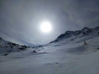 Partito nn prestissimo 9.30, crosta ben portante per tutto l’itinerario. In alcuni punti possono essere comodi i rampanti per chi si stanca presto le braccia. Discesa sempre “allerta” complice la temperatura la crosta di tanto in tanto cede.