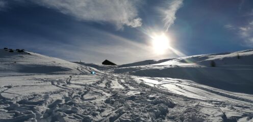 Prima gita dell’anno a questa panoramica punta. Partiti dal parcheggio e raggiunto Cheneil su bella pista battuta. Proseguito su sentiero (senza attrezzatura) con neve dura e battuta da tanti passaggi fino al Santuario di Clavalitè. Dal Santuario io e Pier Albino siamo andati alla Punta Fontana Fredda. Scesi sulla pista e risalita la cresta con tracce di passaggio. Messo ramponcini. Ritornati al Santuario sceso con ciaspole (visto che le avevo dietro) ma si poteva scendere anche senza niente.