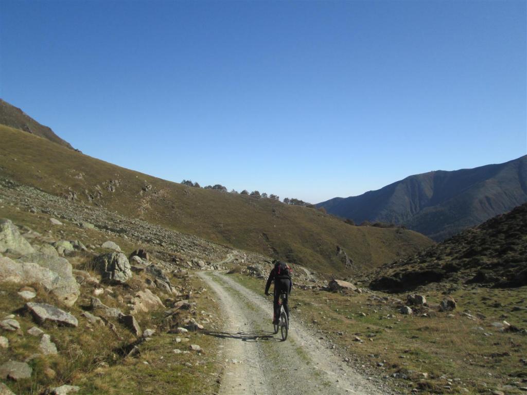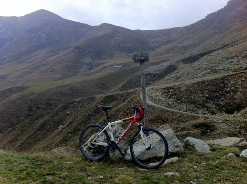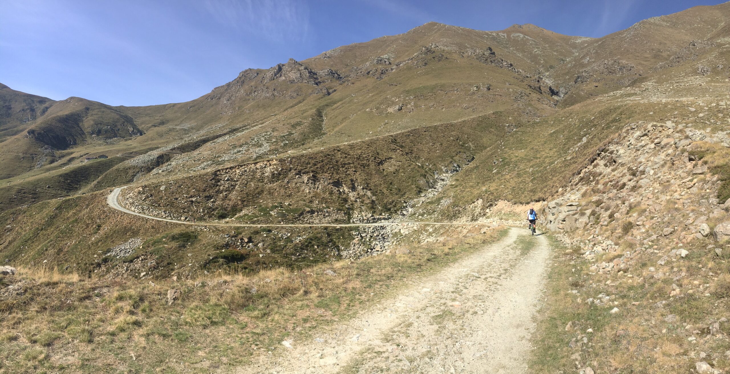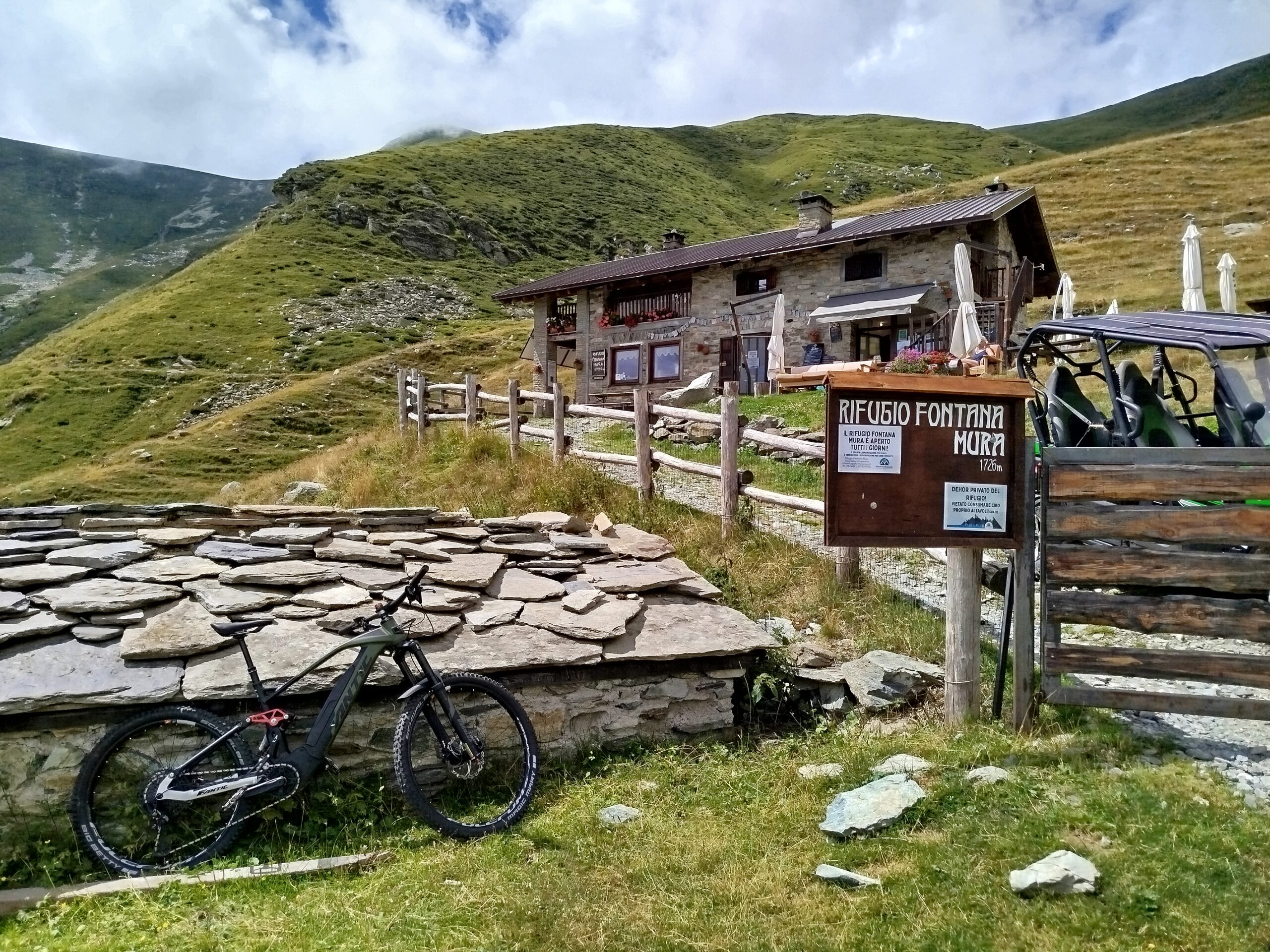 Da qui il fondo peggiora sensibililmente, pur restando pressochè sempre pedalabile (ci sono un paio di rampe con molti sassi, possibile doverle fare a piedi). Raggiunto un colletto il rifugio è ormai visibile, ancora due tornanti e poi l’ultimo rettilineo.