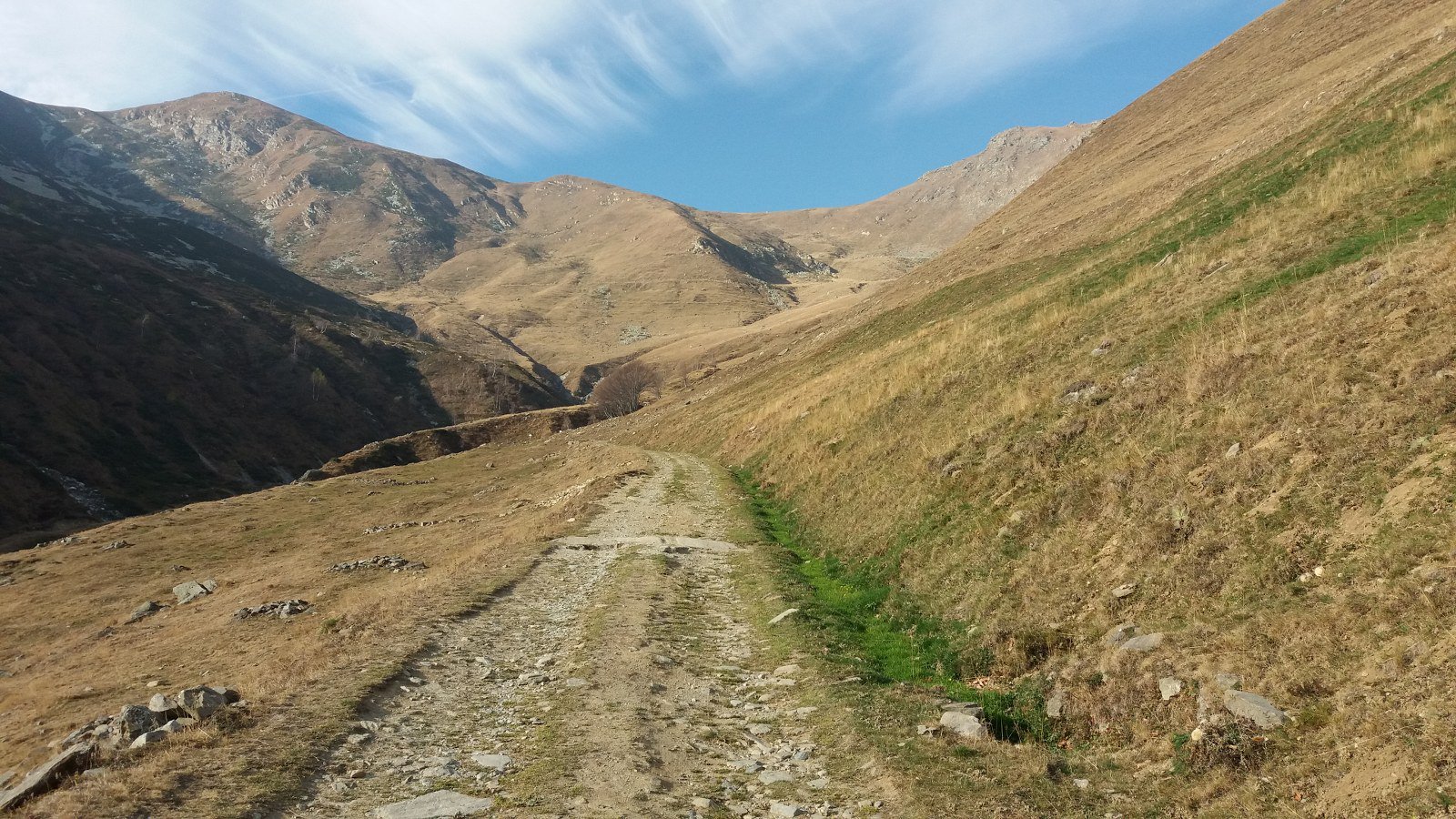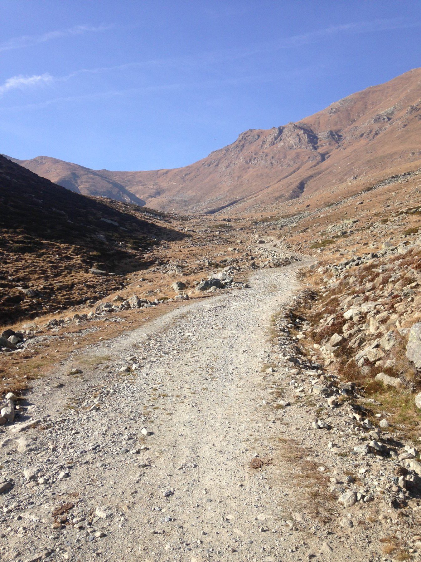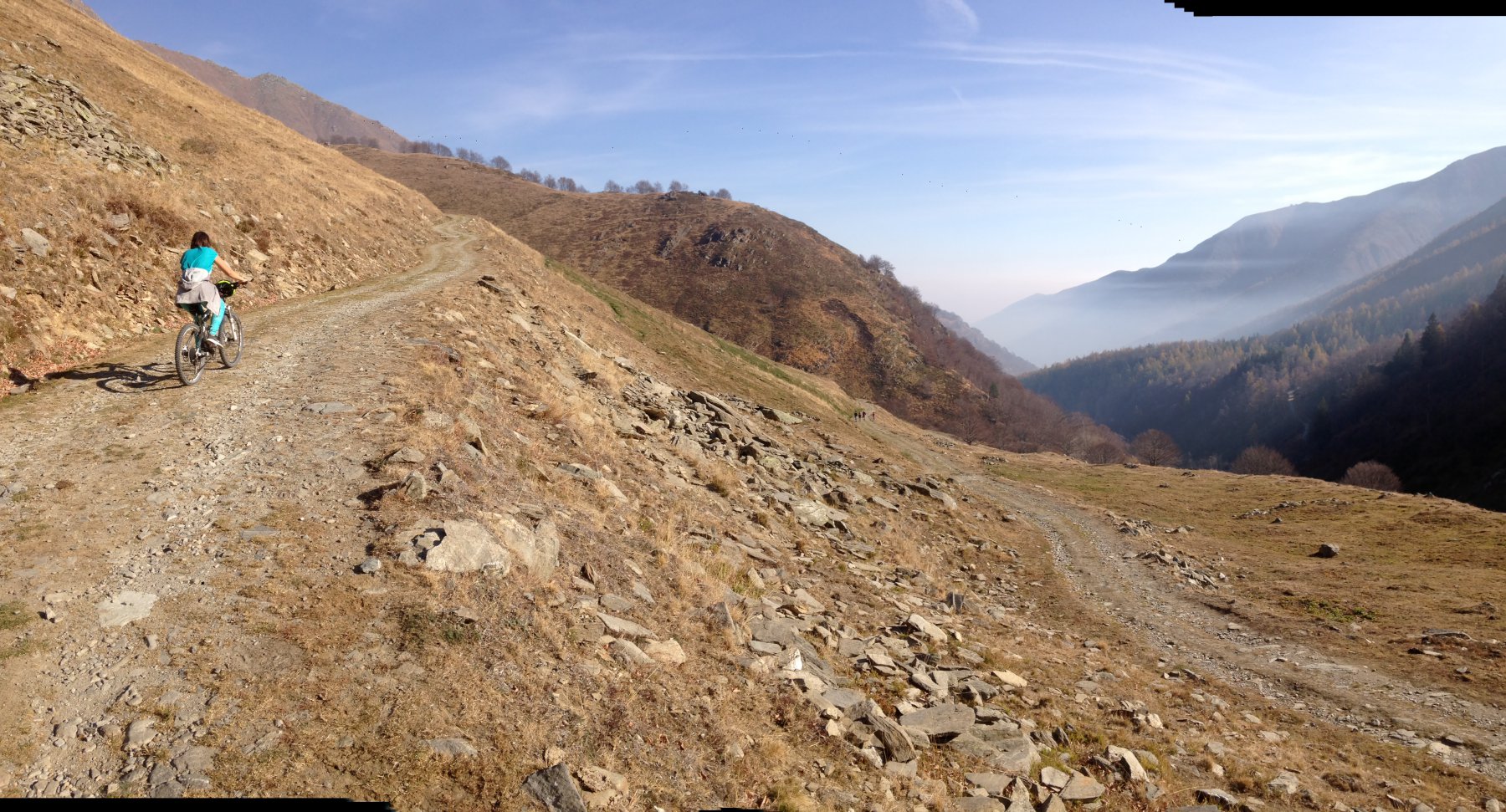 La strada diventa sterrata ed inizialmente in falsopiano (c’è subito una fontana); poi si alternano rampe a tratti più semplici, fino a che ricompare l’asfalto, in corrispondenza di rampe durissime (si arriva al 18%) per fortuna abbastanza brevi. Quando l’asfalto termina definitivamente, si affrontano alcuni guadi e lo sterrato non è più ripidissimo (seppur sempre faticoso) e con buon fondo. Si trascura a sinistra il bivio per la Palazzina Sertorio a 1400 m, per poi riprendere a salire più faticosamente con alcuni tornanti, sino a toccare l’Alpe Sellery Inferiore 1550 m.