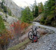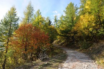 Si sale su strada impegnativa con fondo talora pessimo ( itinerario n 4 dal libro MTB sulle strade militari alpine di Guido Ragazzini)