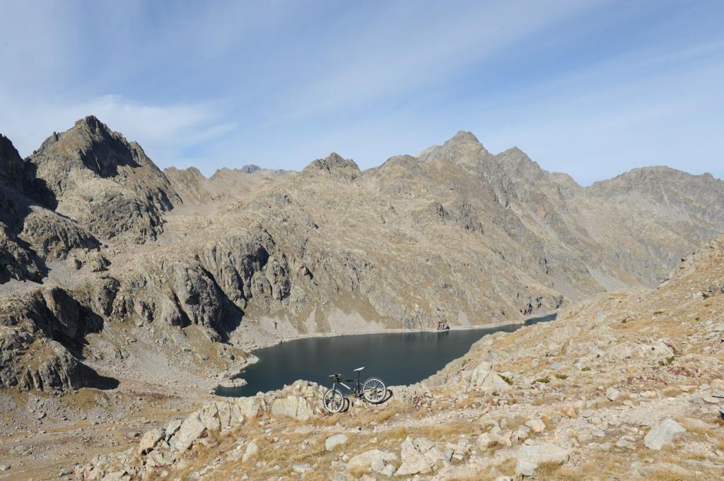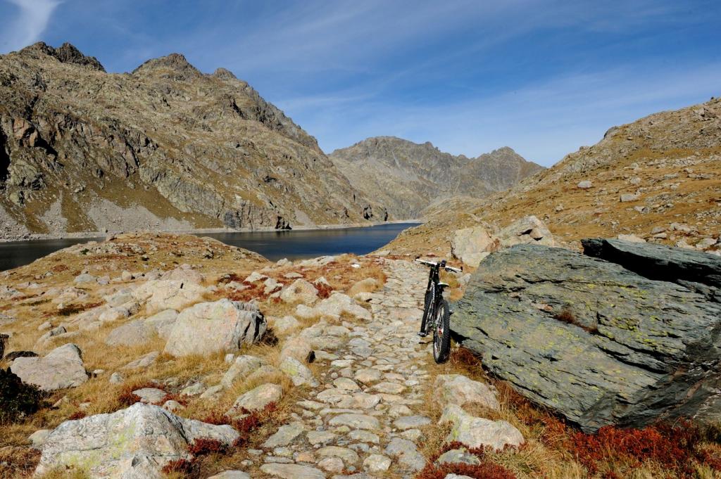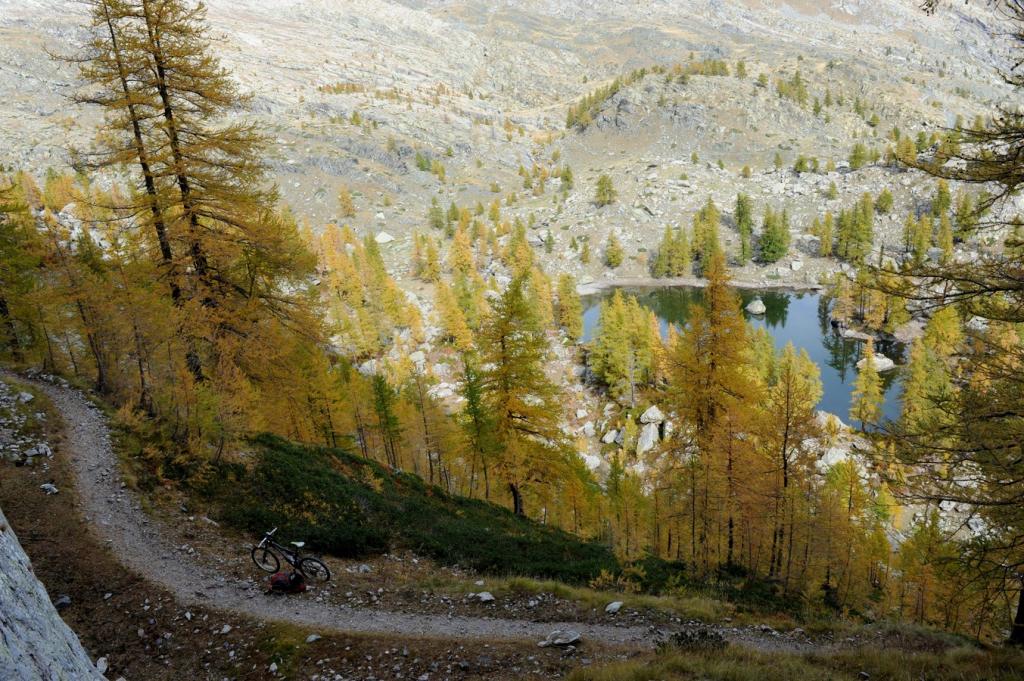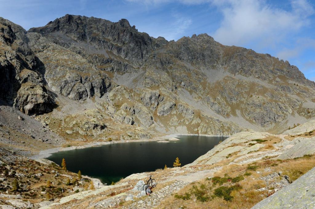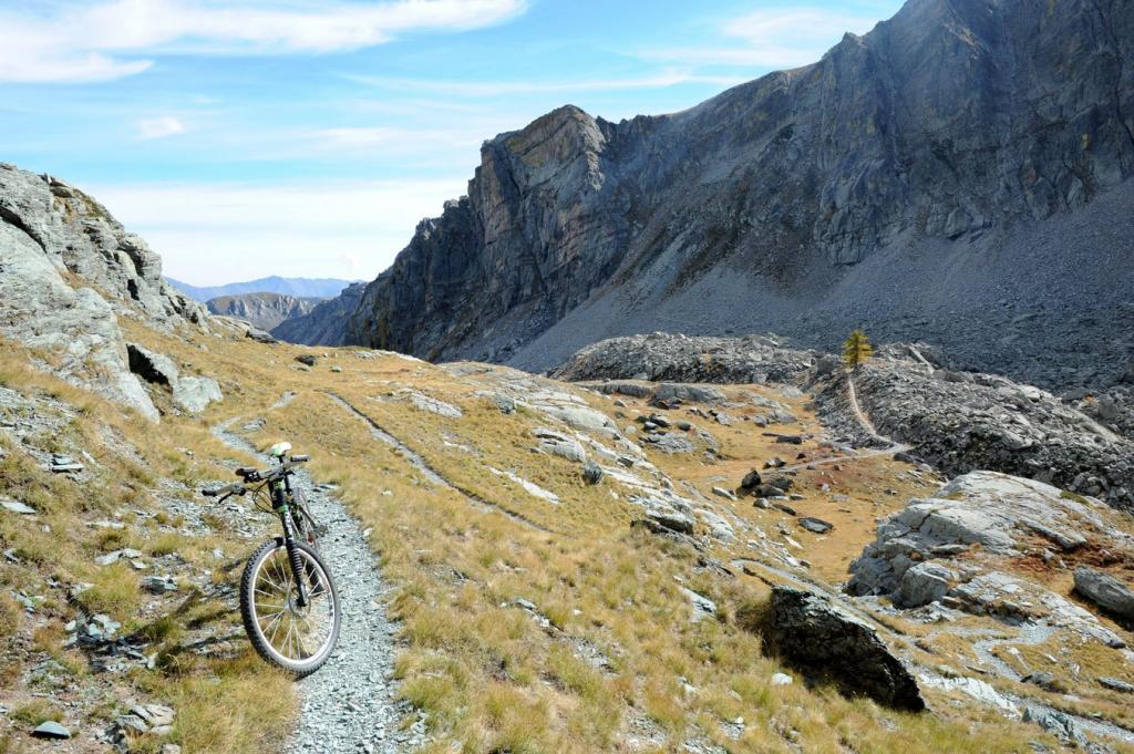 In corrispondenza di questo si può salire dalla balise 96 sino alla balise 397 con portage duro , arrivare ad un portage più soft dalla basse di Fontanalba sino alla balise 396 praticamente in piano con piccoli munta cala sempre spingendo portando. però dopo c’è una discesa spettacolare , ciclabile , facile e divertente con tratti tecnici ma fattibili … discesa bella e continua su traversi e sentiero pulito oppure sassoso ma liscio fino alla Basse di Valloretta … da qui si passa sul Lac Vert di Fontanalba e si costeggia il Rifugio e tutto un divertimento senza problemi sino a Casterino sia passando a destra che a sinistra della balise 390 che incontriamo . Il percorso di sinistra è più lungo e divertente .