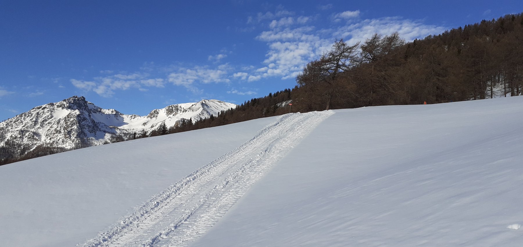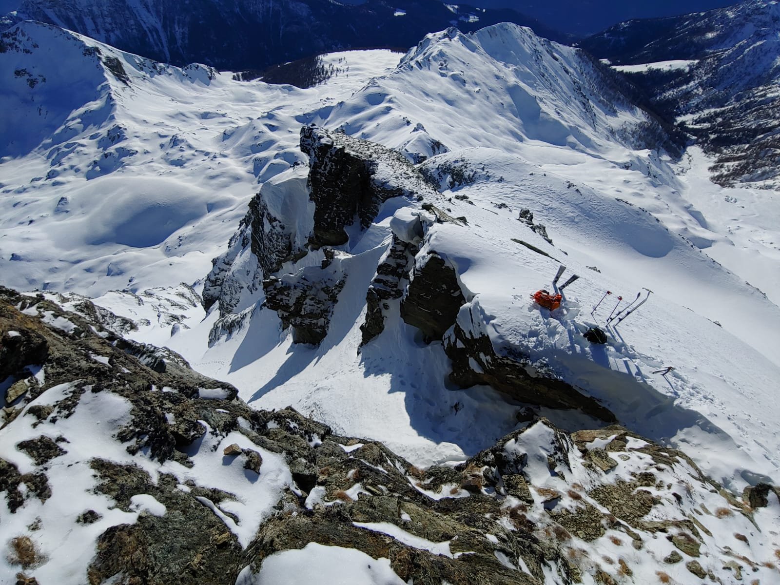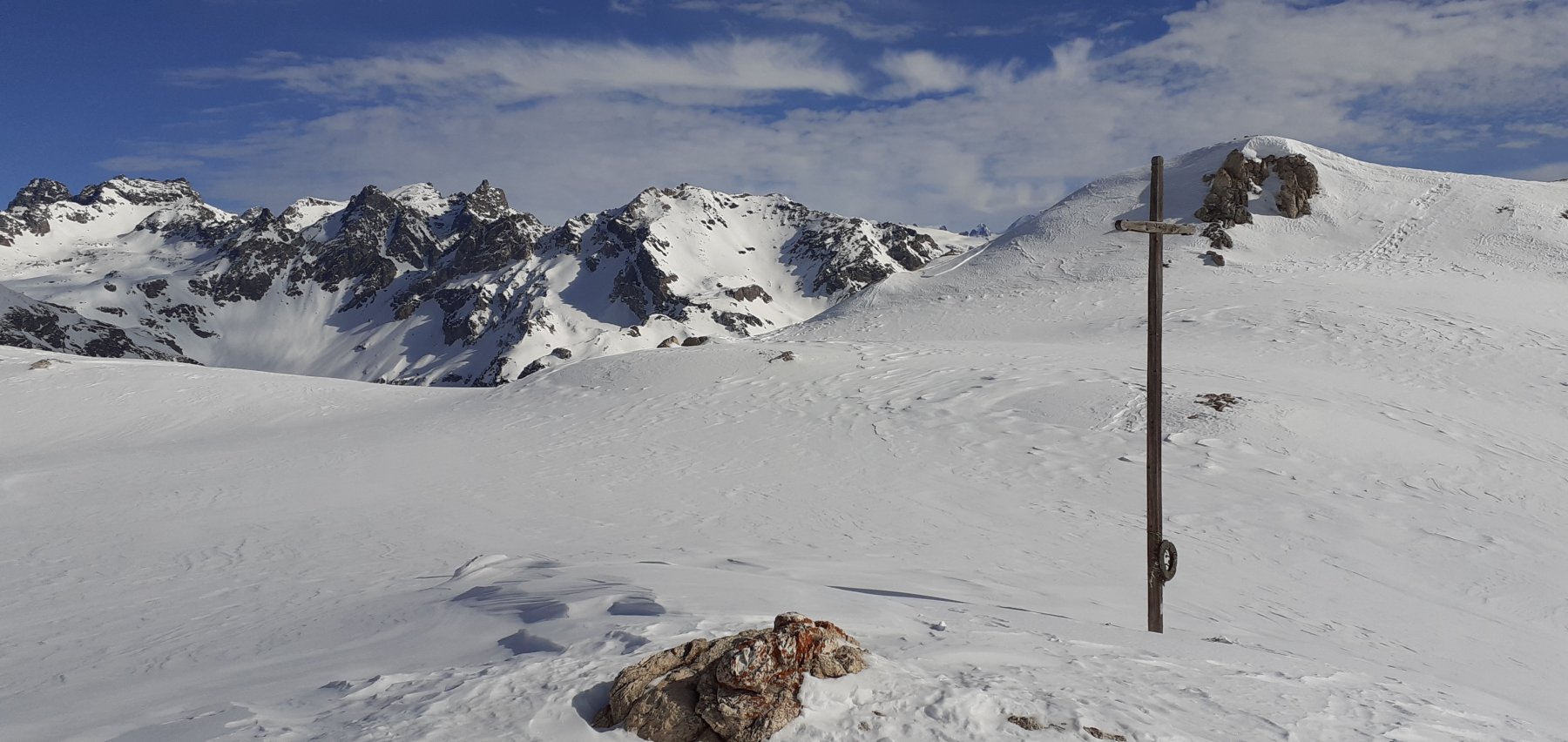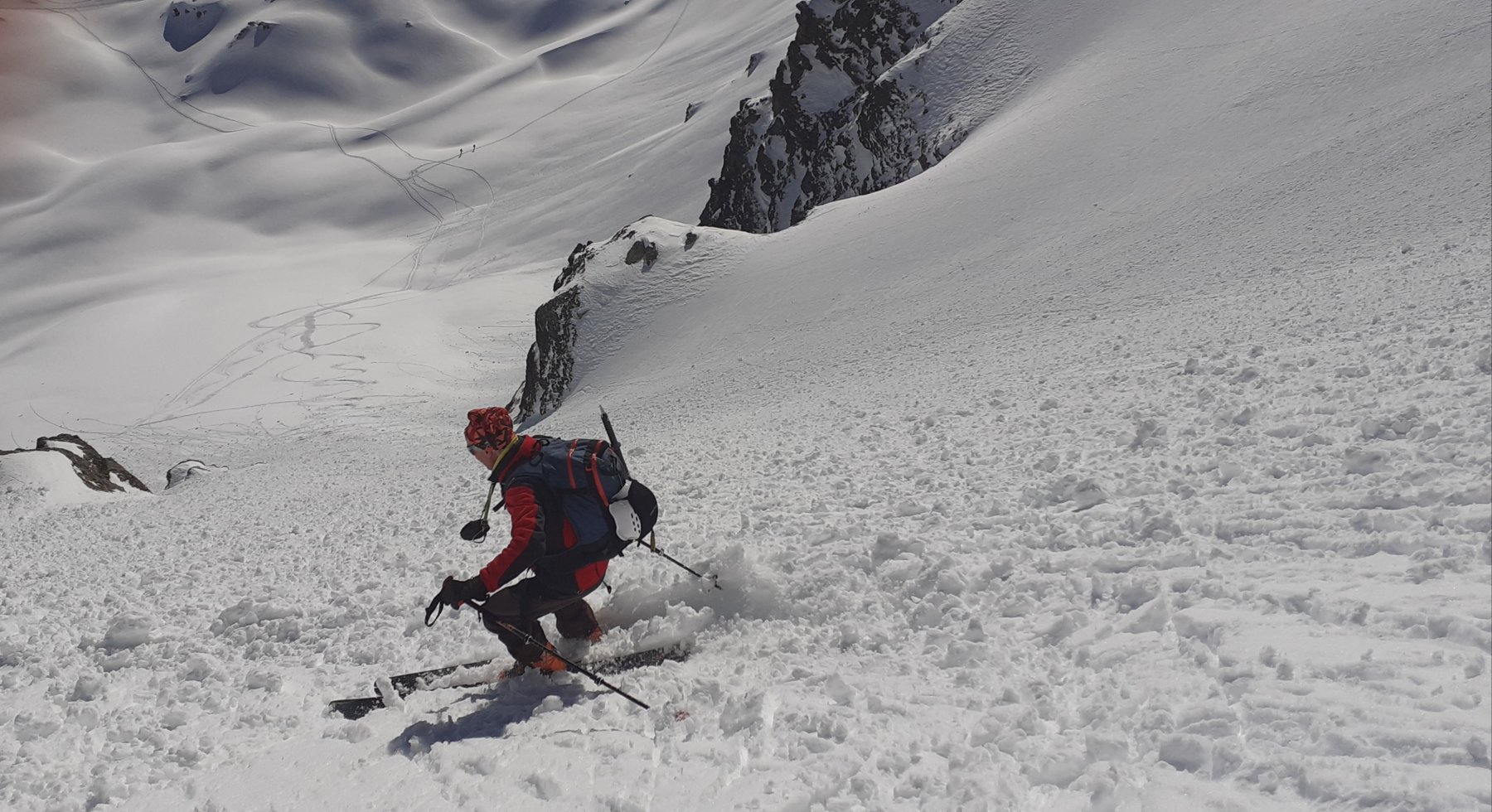Prima parte identica all’itinerario per il Col Salvė. Poi giunti al colle si prosegue nella conca sotto il Colle Chalėby, il canale lo si ha di fronte , è ben visibile, quindi si inizia a salire il conoide finchė si riesce con gli sci per poi calzare i ramponi e risalire il canale a piedi , le pendenze variano intorno ai 40° e 45 ° per circa 200 mt di dislivello. Ad un certo punto il canale si sdoppia , tenere il ramo sx per poi sbucare direttamente sotto la cima .