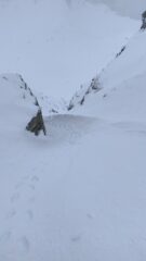 Sono partito dall’osservatorio. Neve dall’auto. Sono partito che erano già quasi le 10, ma nessuno mi aveva preceduto a tracciare. In tutta la giornata, ho poi visto un solitario e un gruppetto da 3 che hanno raggiunto il colle.