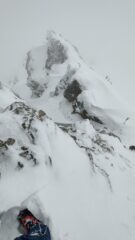 Fino al colle la neve vecchia era crostosa abbastanza dura e si lasciava sciare grazie ai pochi cm di fresca caduti nella notte.
