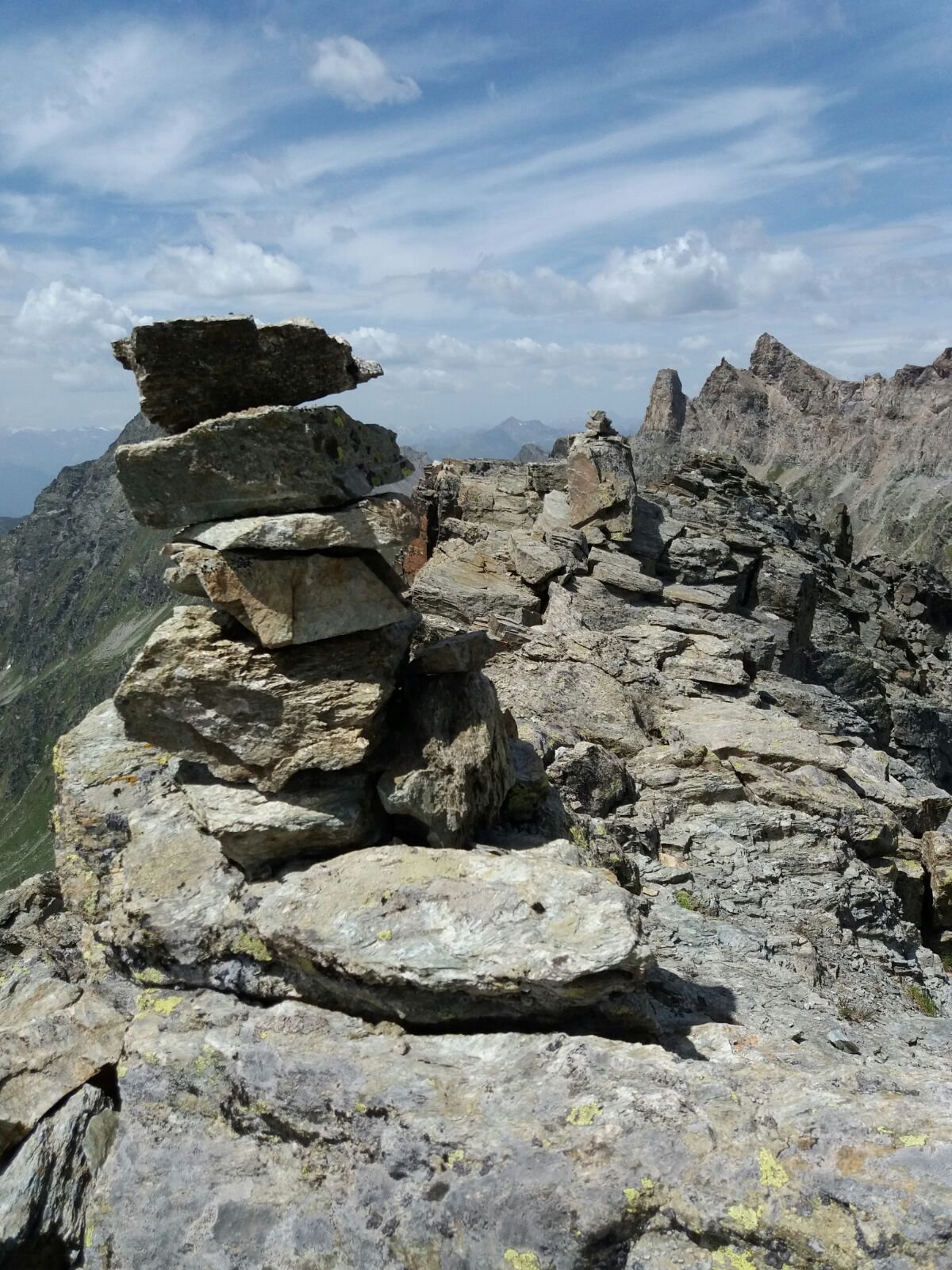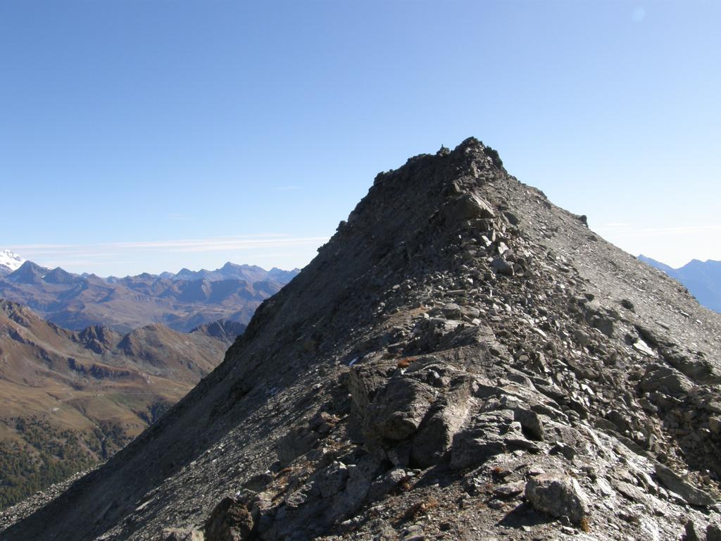Dal punto in cui si perviene in cresta, si vede distante circa 20 m lineari l’ometto della cima, verso est: per raggiungerlo occorre percorrere la cresta che non presenta reali difficoltà ma è piuttosto esposta.
