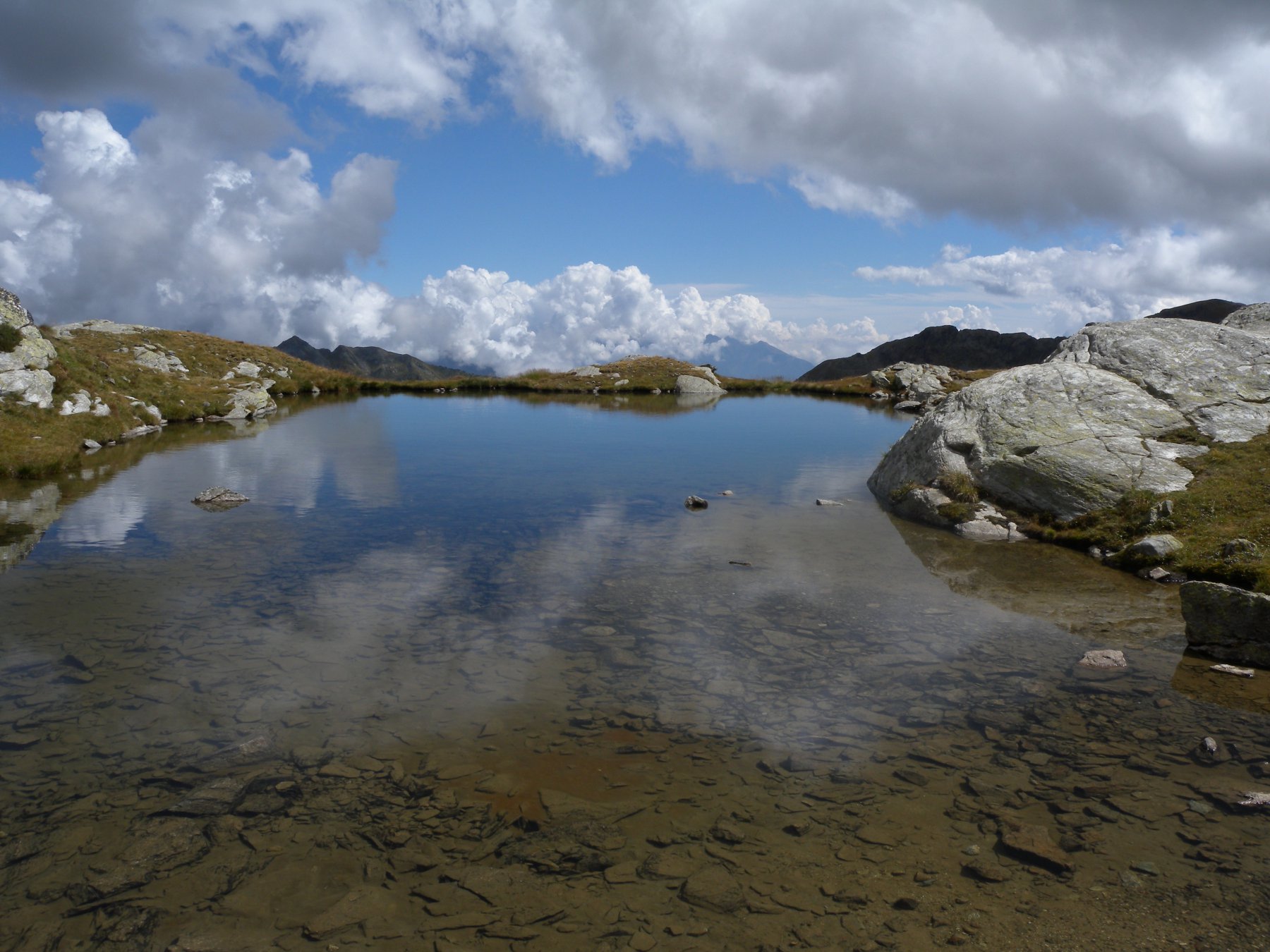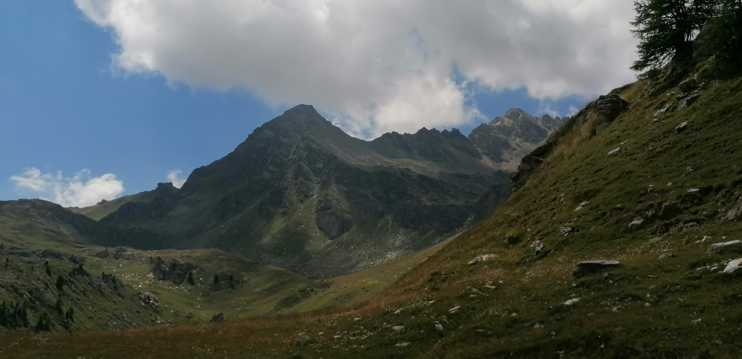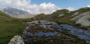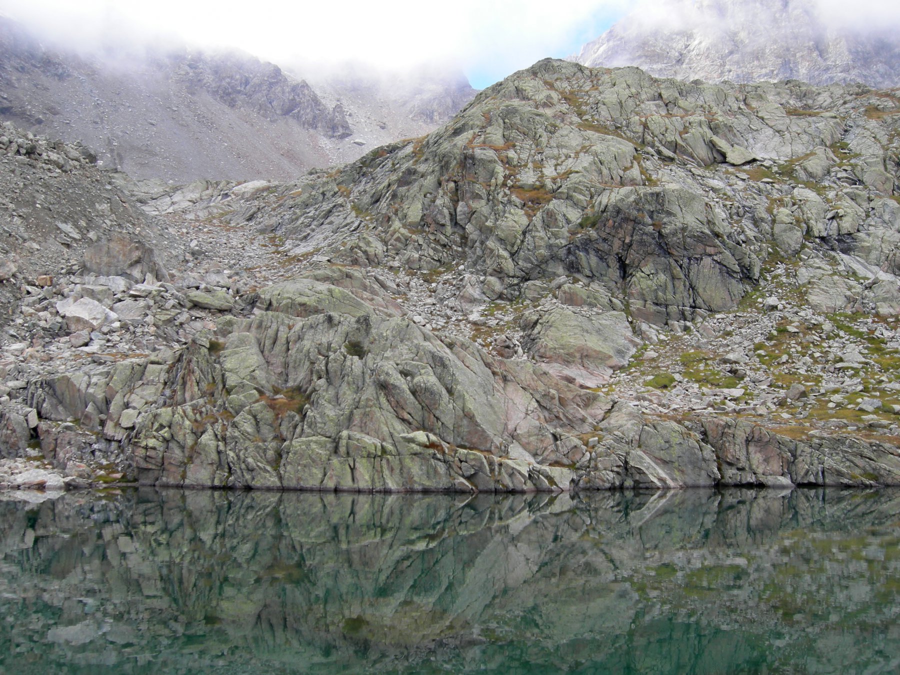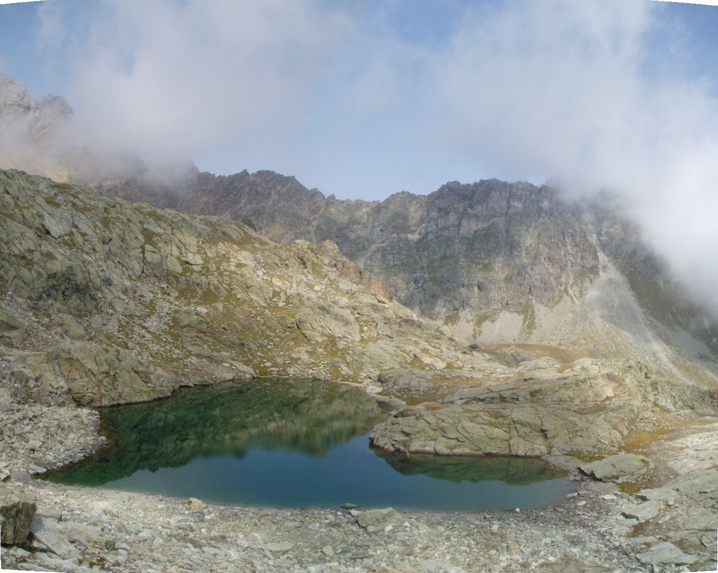 Dal rifugio, si prosegue in direzione ovest per un tratto e poi sud (sinistra) seguendo dei segnavia di un vecchio sentiero (n.14) che per facili dossi di rocce montonate ed erba portano alla conca con il bel Lago Pisonet 2780 m, posto al margine di una morena.