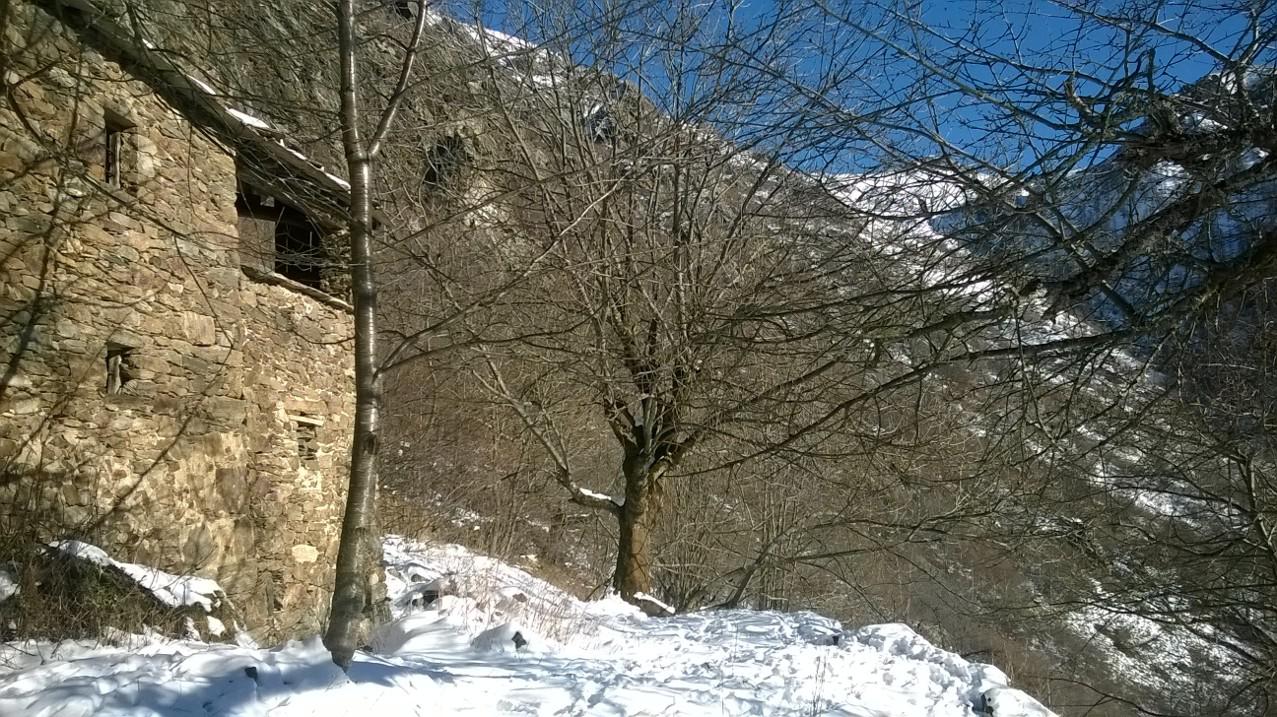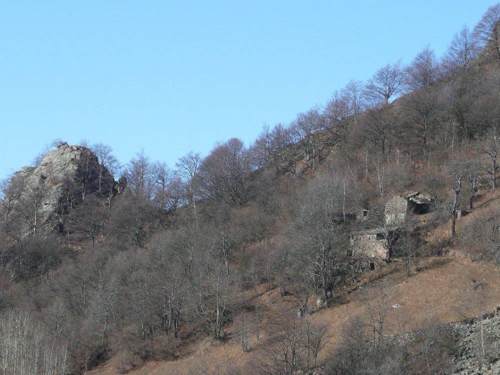 Si risale dietro al borgo spostandosi tra la fitta vegetazione decisamente a sx, fino a trovare dei muretti in pietra, dove nei paraggi si scorge il sentiero che prima sale e poi effettua un lungo traverso a sx fino ad attraversare il rio Fura e toccare l’Alpe Pianetti 1400 m.