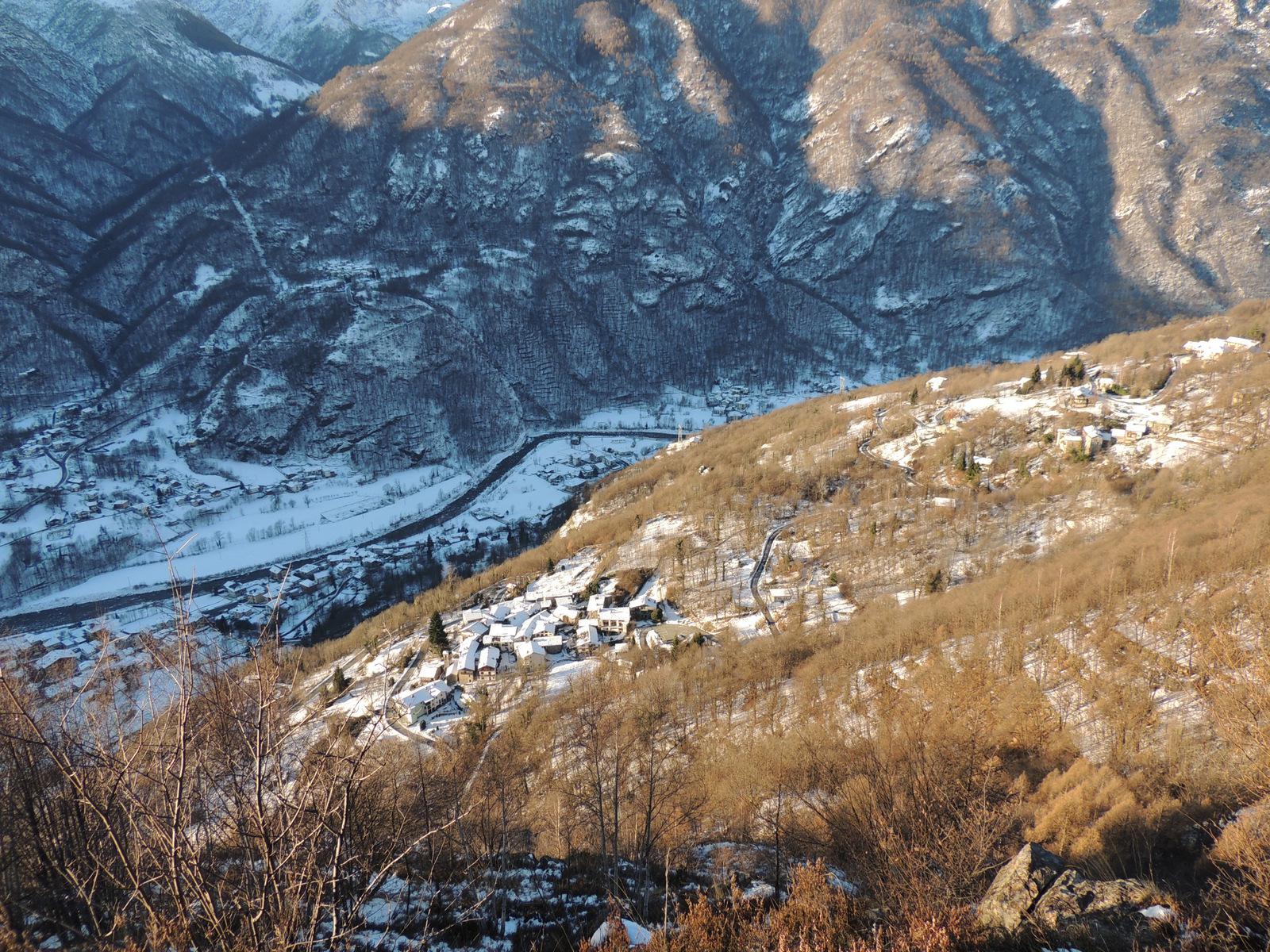 Percorsi pochi metri si svolta a dx risalendo la gradinata che costeggia la vecchia fornace di calce, poco sopra si prosegue a dx x il sentiero che sale verso Mardotiglio. A 1080 m si trovano le prime baite e proseguendo verso dx si arriva a Mardotiglio 1117 m.