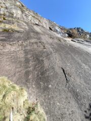 Stile di arrampicata: aderenza pura e qualche passaggio in cui occorre artigliarsi con le dita.
