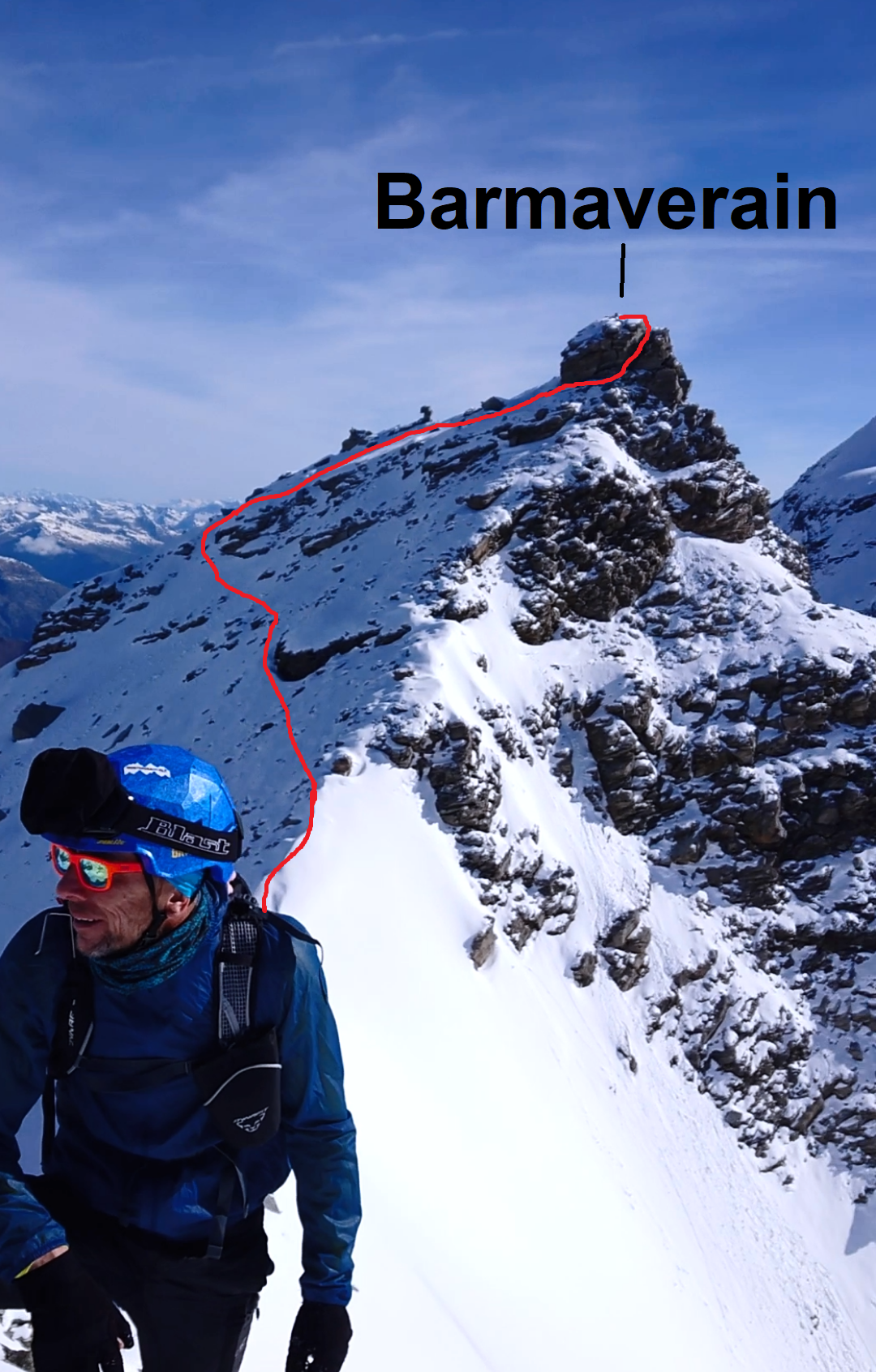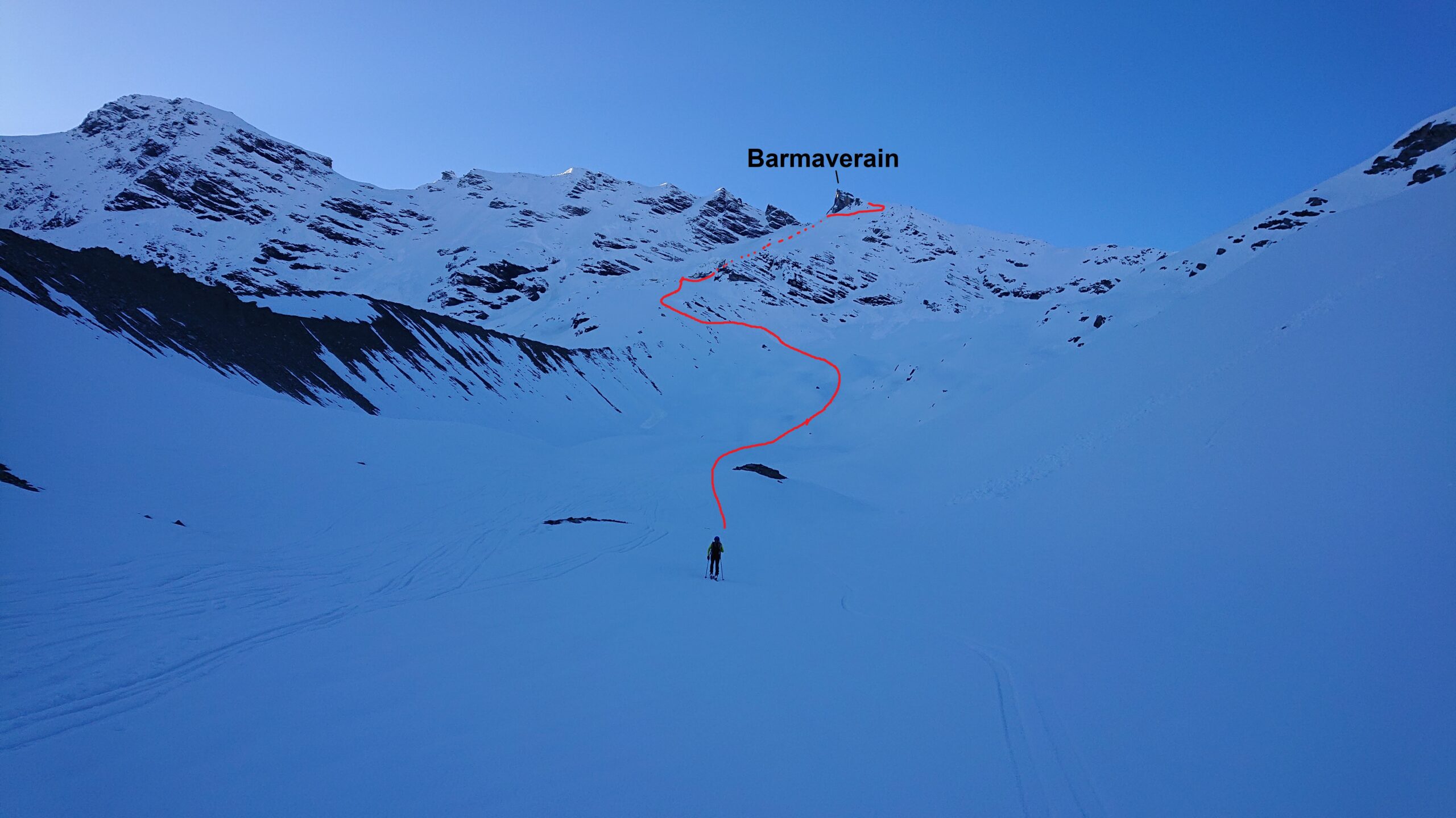 L’itinerario segue quello per la grande Rousse, arrivati all’inizio del ghiacciaio prosegue dritto verro l’evidente colle e da li in cima.